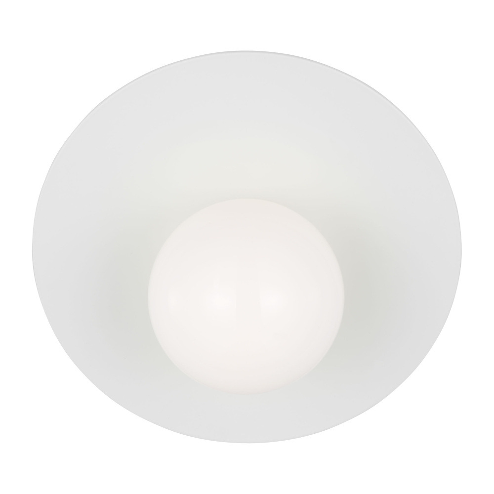 Nodes task, ceiling and wall lighting is minimal yet bold, highlighting Kelly's distinctive juxtaposition of mixed-materiality and curvilinear form. Light radiates from milk glass globes set against metal discs. All fixtures can be used or without the discs. The cast canopy is available in modern finishes. Hanging fixtures within this family feature black fabric cords, while pivot sconces can be cord and plug or hard wire.