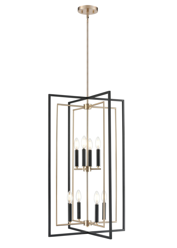 An artistic wonder, the Noelle Family of pendant lighting makes a bold design statement for any modern interior. Mixing modern gold and matte black finishes, these fixtures are evocative of mid-century mobile forms with geometric lines creating a beautifully balanced dimensional effect. Available as 4- or 8-light pendants, they are designed to make an ultra-modern statement over any dining table or kitchen island.