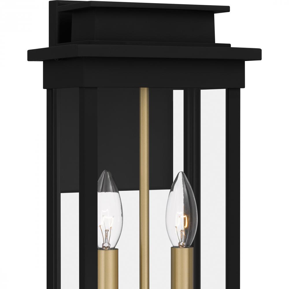 Inspired by traditional lanterns, Noelle puts a modern twist on a classic design. The slender silhouette is crafted from weather-resistant aluminum and finished in a timeless matte black. Clear glass panels showcase the sleek candle sleeves and lustrous br