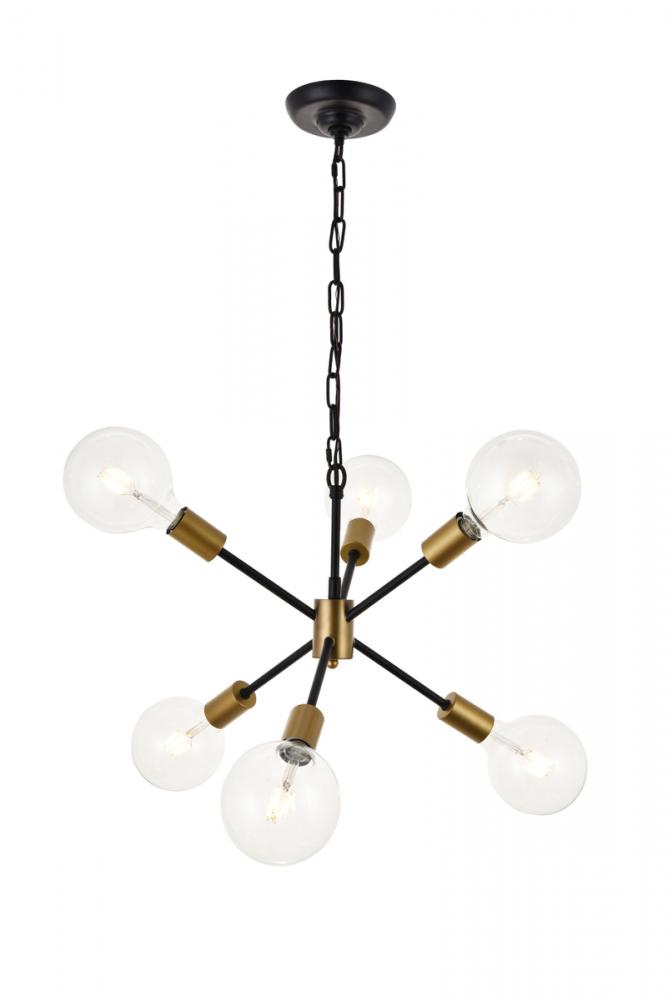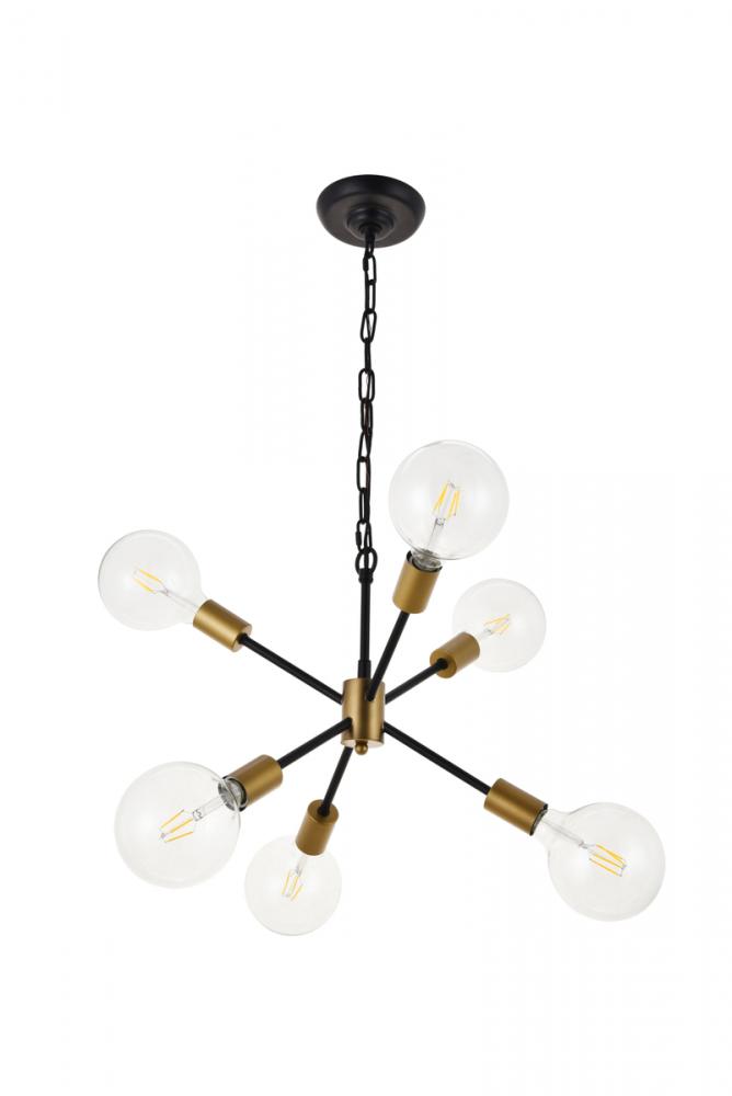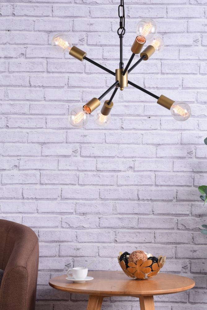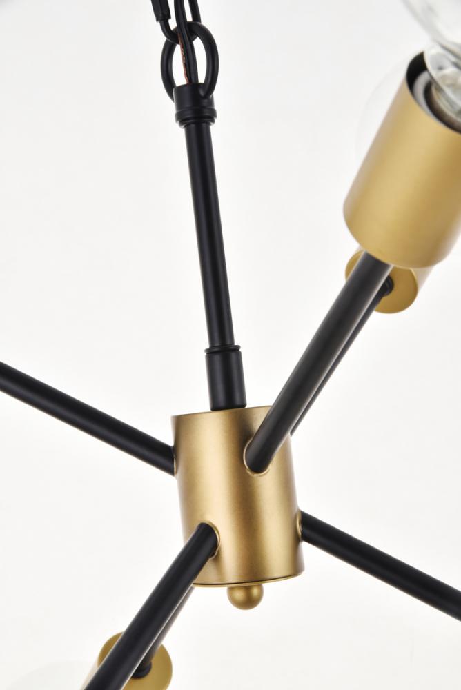 The Nolan collection pendant lamp illuminates in all directions, creating a wonderful display of artistic style and brilliance. If your home was a modern art exhibit, then you have curated the best possible piece of art--also known as the Nolan pendant lamp. With six lights pointing in different directions, and the two-toned matte black and brass finish gleaming in modern beauty, you won't have to worry about being "up-to-date" because you already are (light bulbs not included).