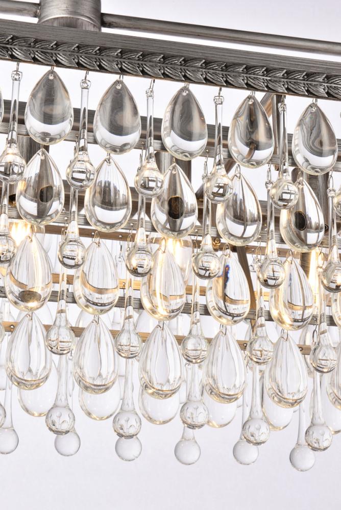 Mulitple layes of clear crystals reflect the soft glow of 6 candelabra bulbs