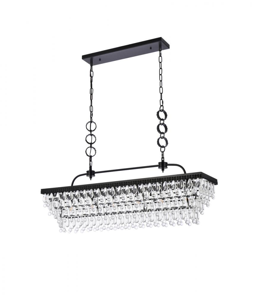 Like the sun setting on a frozen lake, this collection shimmers with tiers of icy crystals reflecting the soft glow of the candelabras. True to its Nordic namesake, the cascades of clear crystals complement the etched metal frame. Suspended by an elegantly looped chain that draws the eye to the cool sheen below. Perfect to place over your dining table.