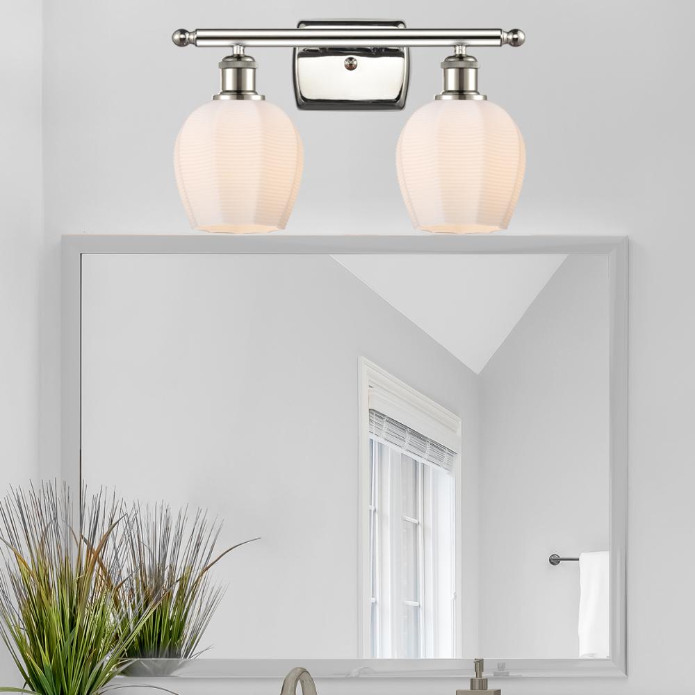 Norfolk - 2 Light - 16 inch - Polished Nickel - Matte White Shade - Bath Vanity Light