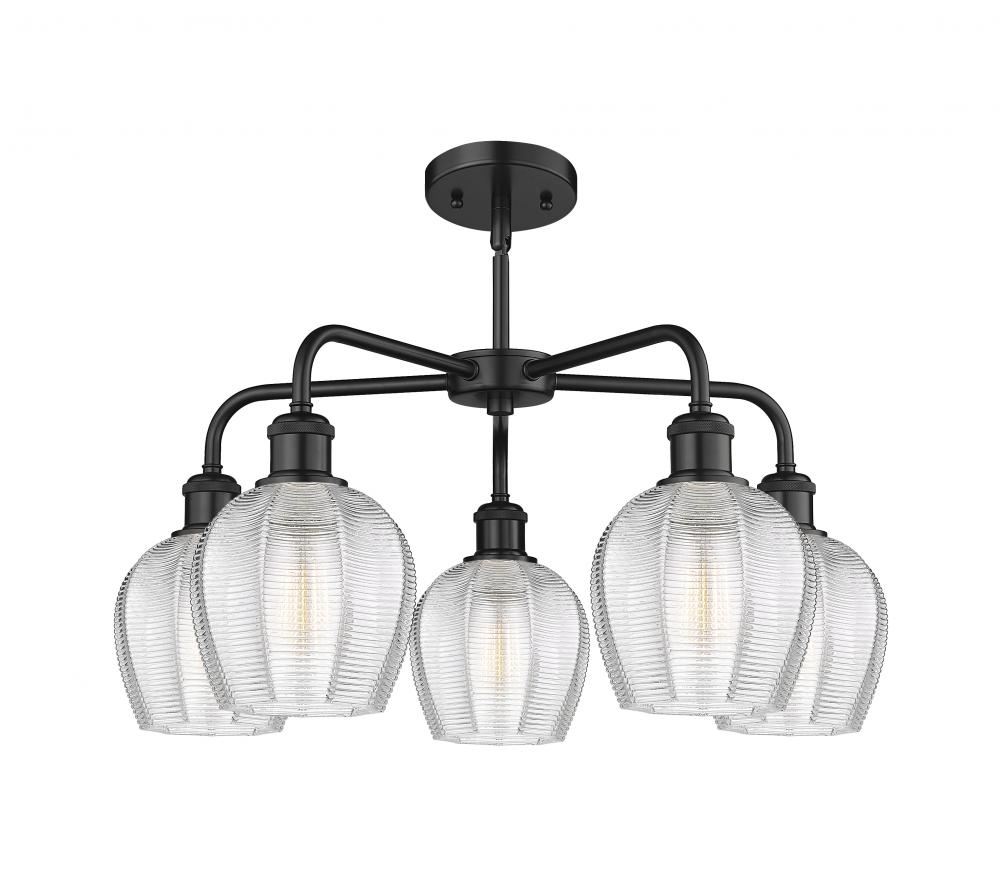 Norfolk - 5 Light - 24 inch - Matte Black - Clear Shade - Chandelier