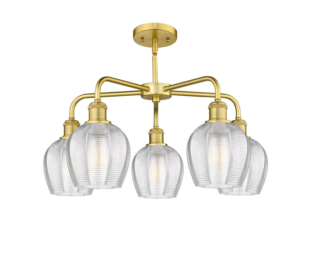 Norfolk - 5 Light - 24 inch - Satin Gold - Clear Shade - Chandelier