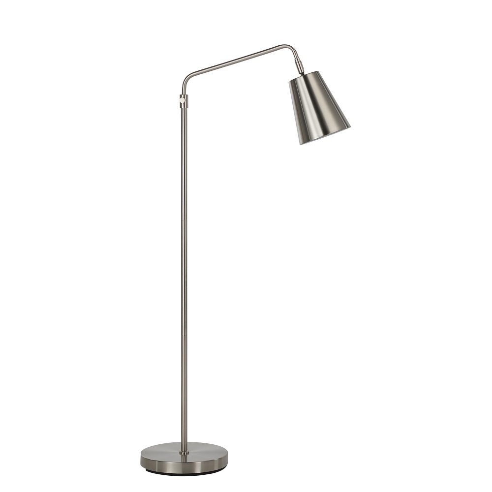 The Norwich floor lamp is poised to help create the perfect lighting in any room. Ideal for a cozy reading corner, near a sofa or next to a bed, this adjustable-height fixture effortlessly delivers ambient light anywhere it stands. Its allover brushed nickel-plated finish and clean-lined design blend stylishly with many decorating schemes. Give its foot switch a simple tap to flood any space with light and modern style.