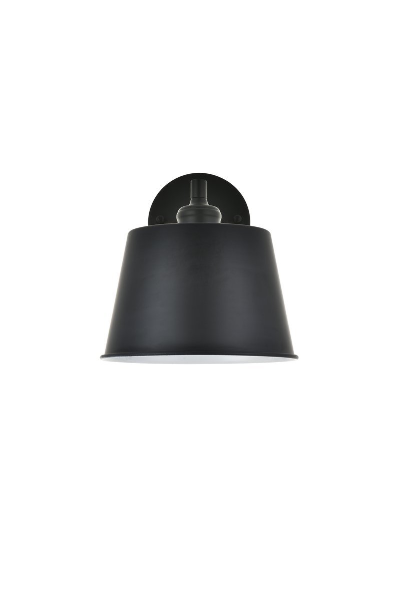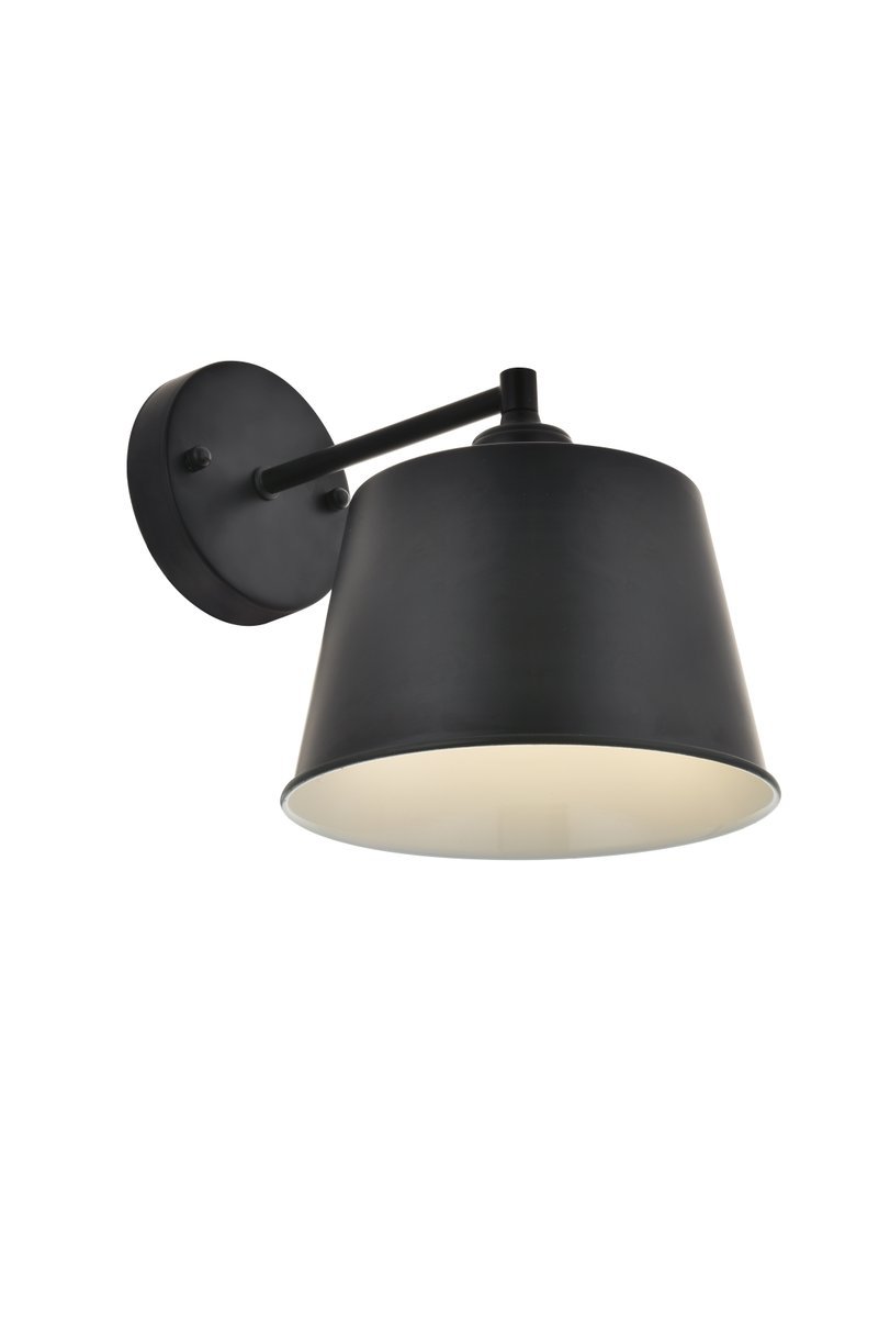 Contemporary and minimalistic black finish wall sconce with a drum shaped shade
