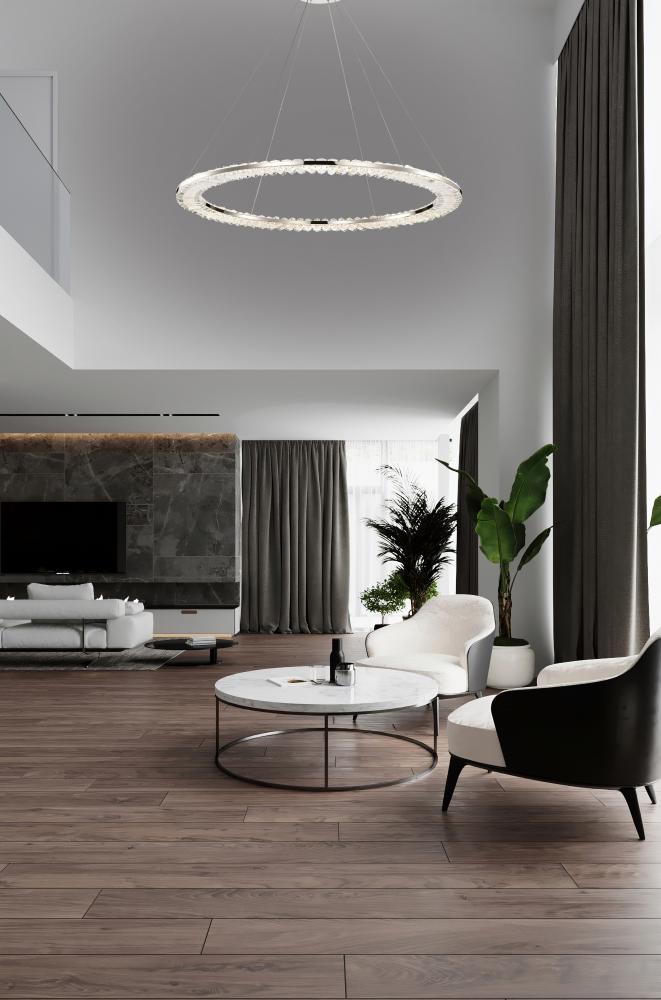 Showcases contemporary design with its fluid lines, bold yet balanced forms, and a fresh, forward-thinking aesthetic.