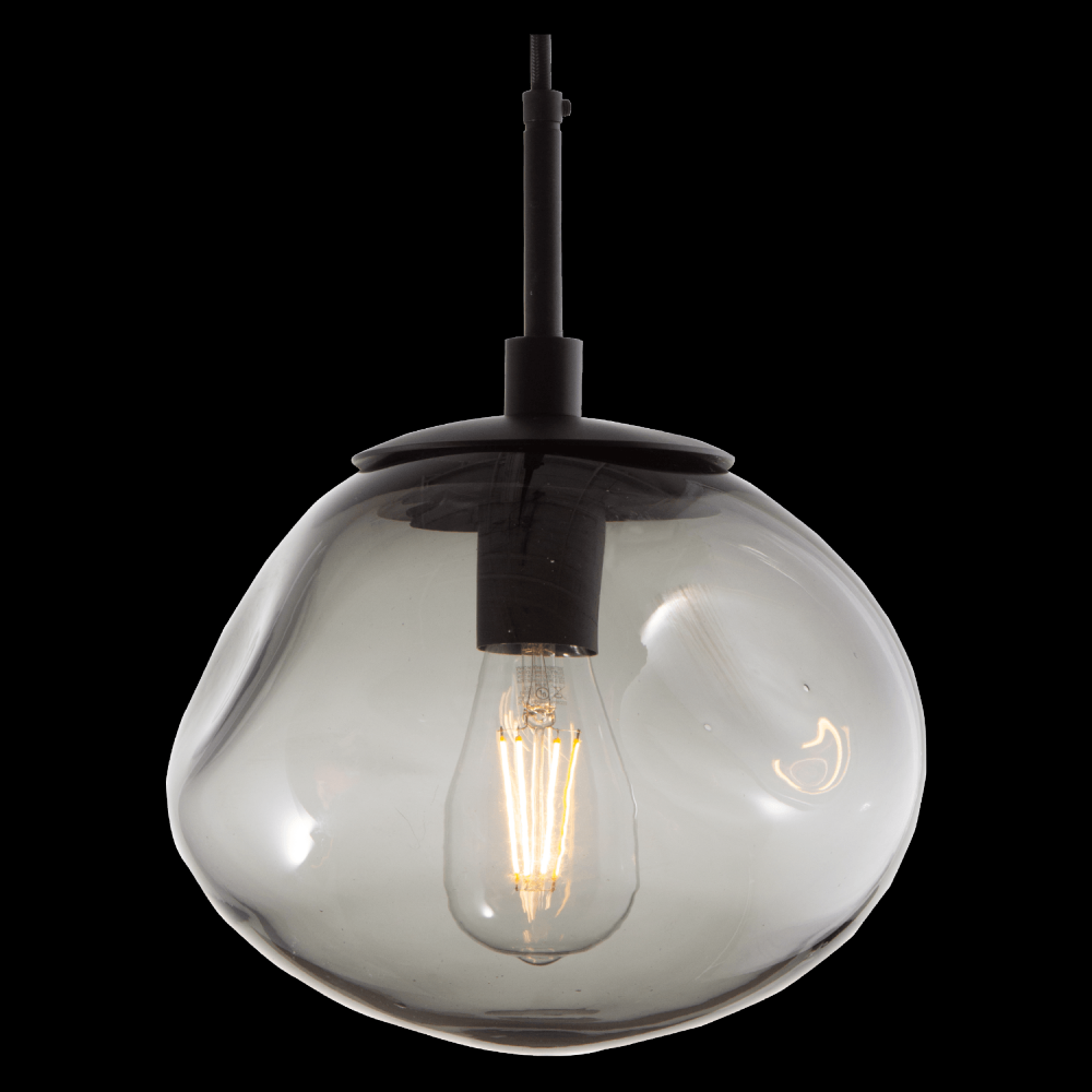 Nova Pendant - Incandescent - Burnished Bronze - Amber Blown Glass - Cloth Braided Cord - Incandescent E26 Socket