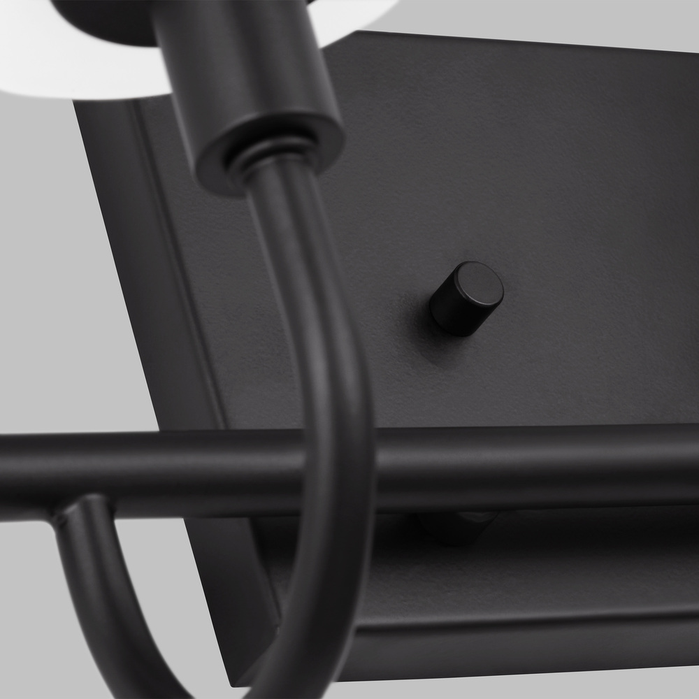 Oak Moore is a universal vanity series available in four finishes. Curved bar detail and etched white shade give it a transitional look. Install the light with glass shades up or down to light up every corner of your room. The shades are made of Etched White glass to cast a soft light throughout your vanity area.