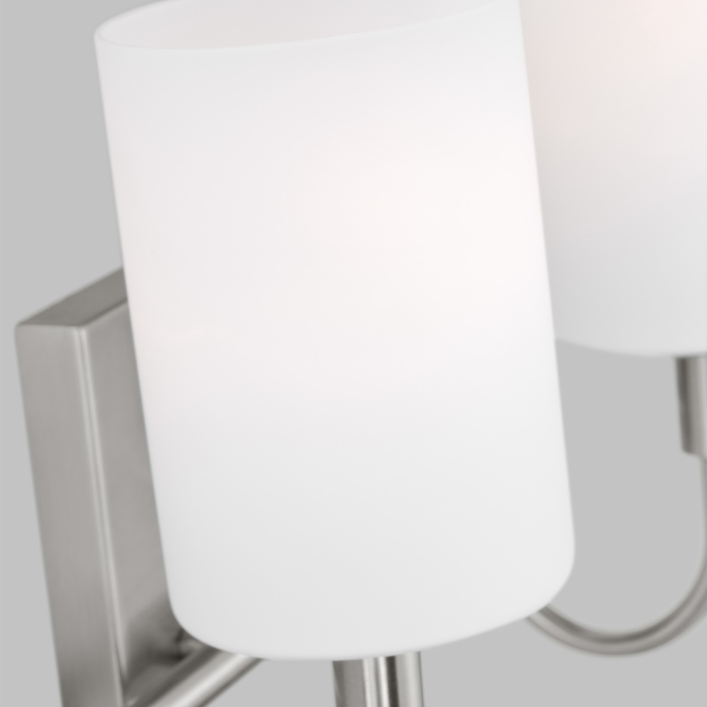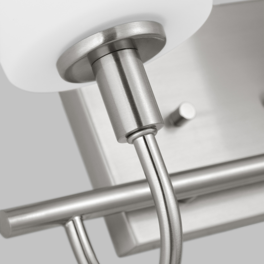 Oak Moore is a universal vanity series available in four finishes. Curved bar detail and etched white shade give it a transitional look. Install the light with glass shades up or down to light up every corner of your room. The shades are made of Etched White glass to cast a soft light throughout your vanity area.