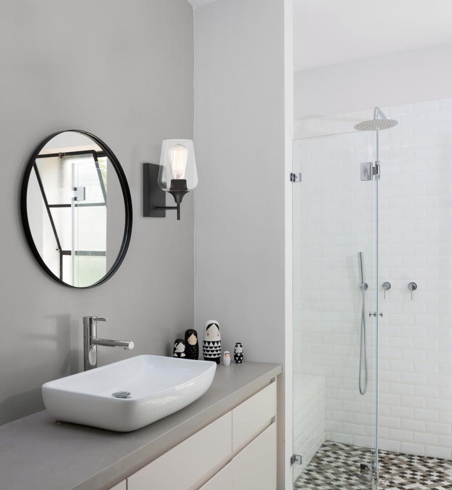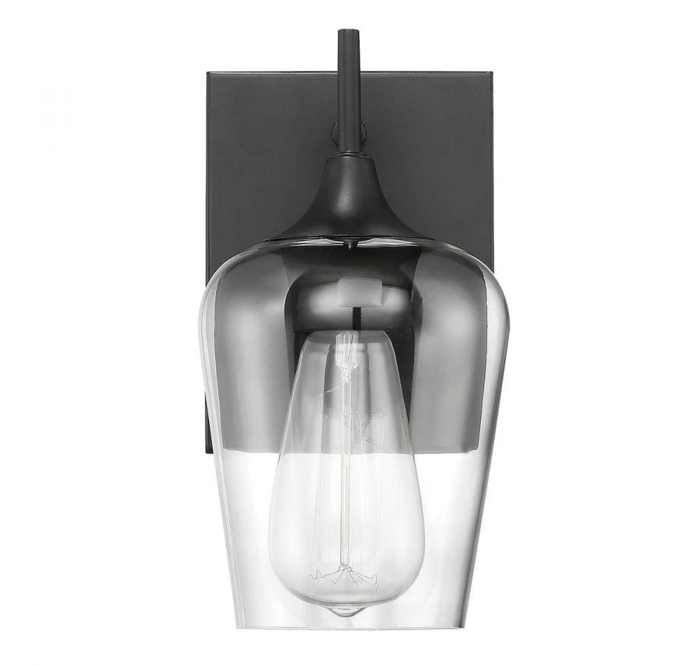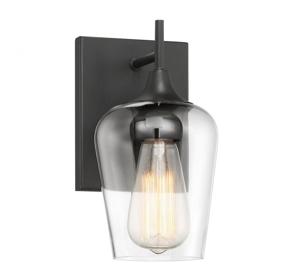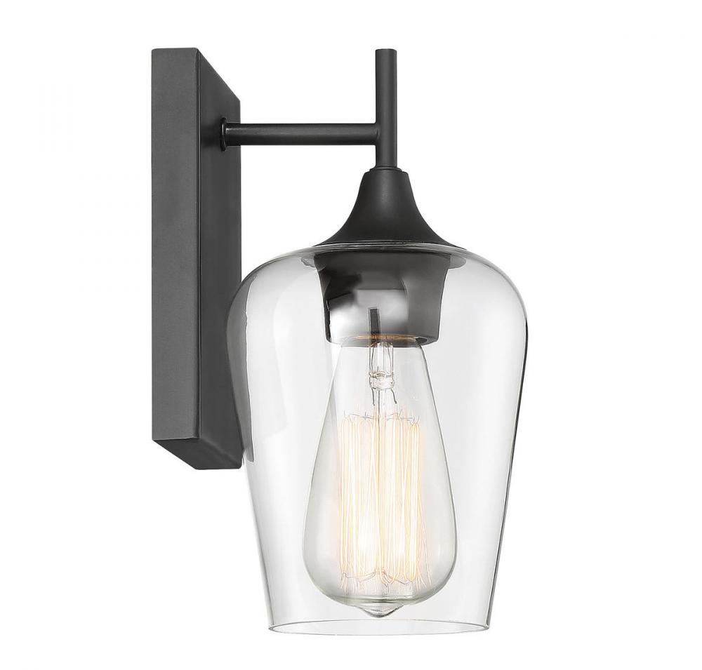 The Octave 1-light sconce from Savoy House has understated elegance. It features a large curved shade of clear glass, minimal detailing and an English bronze finish. It may be mounted as either uplight or downlight. Sconces add a touch of style and light to any wall, including but certainly not limited to hallways, entryways, stairways, great rooms and dining rooms. You will also often see a pair of sconces flanking a bathroom vanity mirror to provide an even, flattering wash of light. Because the bulb is exposed, try using a stylized bulb (not included) such as Edison for a different look! The English bronze finish can be paired with bronze hardware or mixed with hardware in other fixtures. Try the Octave with glam, transitional or contemporary style rooms for a chic look. When you choose a Savoy House lighting fixture, you can be certain you've selected a piece that will withstand the test of time.