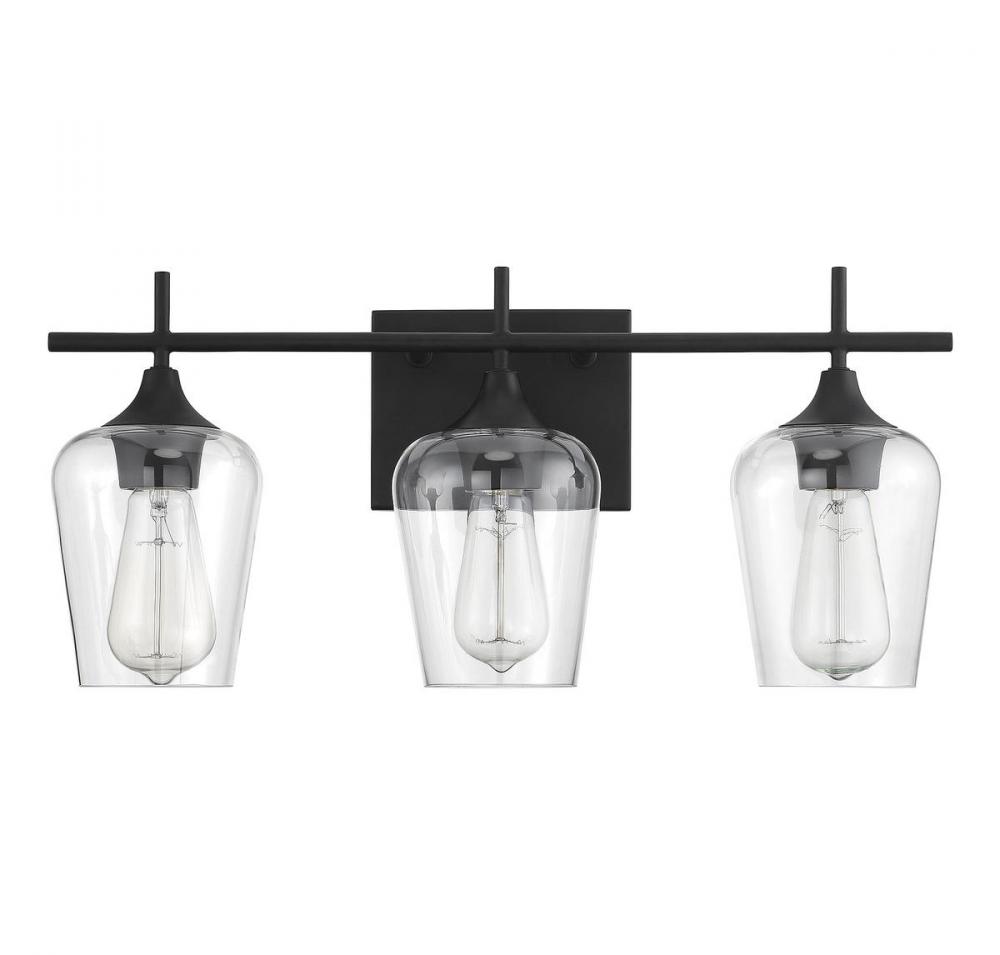 The Octave 3-light bath bar from Savoy House has understated elegance. It features large curved shades of clear glass, minimal detailing and a matte black finish. It may be mounted as either uplight or downlight. Bath bar lights are a classic choice for illuminating vanity mirrors in bathrooms big and small. Because the bulbs are exposed, try using stylized bulbs (not included) such as Edison for a different look! The matte black finish can be paired with black hardware or mixed with hardware in other fixtures. Try the Octave with glam, transitional or contemporary style rooms for a chic look. When you choose a Savoy House lighting fixture, you can be certain you've selected a piece that will withstand the test of time.