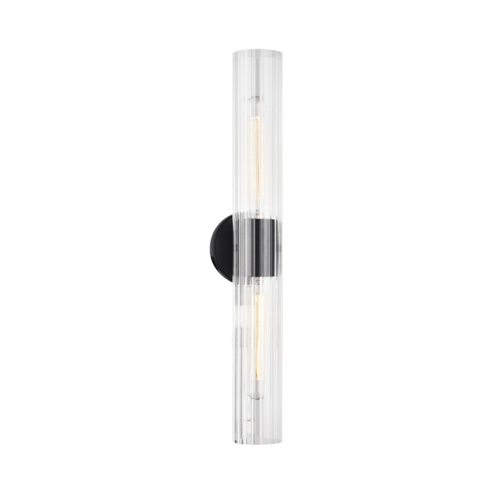 An elegant collection that features intricate detailing of clear ribbed glass. The versatility of this collection allows the fixtures to be mounted vertically and horizontally. Odette is available in 3 finishes: Aged Gold Brass, Black and Chrome as well as 2 sizes; a perfect touch to illuminate any space.