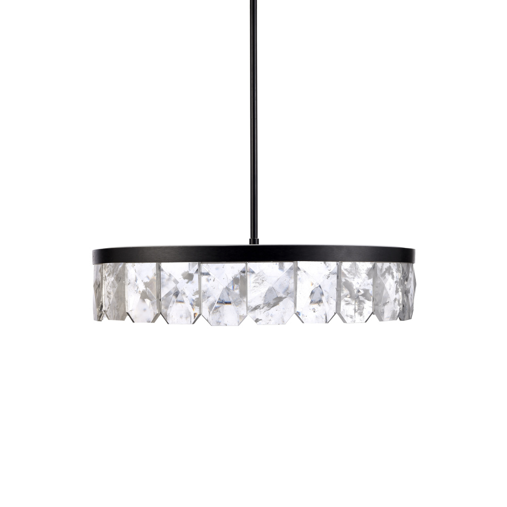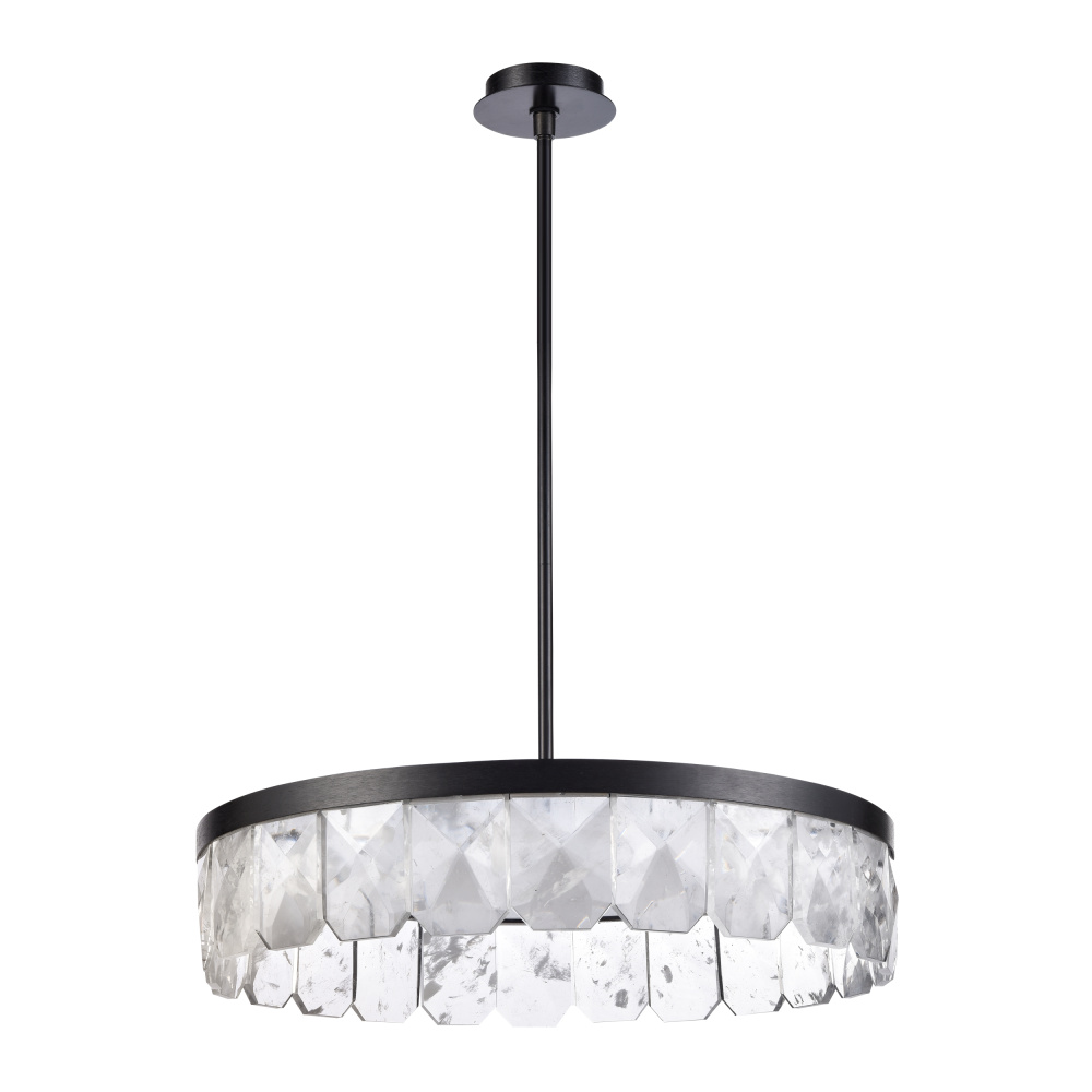 Stunning 32" LED chandelier with pearly infused white nebulas within each crafted crystal which echo inside the pendant with dramatic sequel from inner mirror and finished with our sleek satin brushed black. Easily flush mountable and equipped with integrated replaceable LED, dimmable 3CCT 3000K, 3500K, 4000K modules.