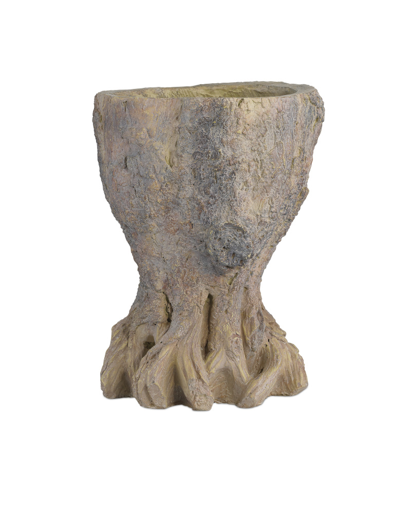 In the tradition of faux bois, the Old Growth Medium Planter is incredibly lifelike. Crafted from fiber cement in a dappled finish, the stump-shaped brown planter looks aged like an antique would had it been ornamenting a garden for decades. The way the gnarled roots culminate at the bottom is particularly convincing. This plant pot has a drain hole.