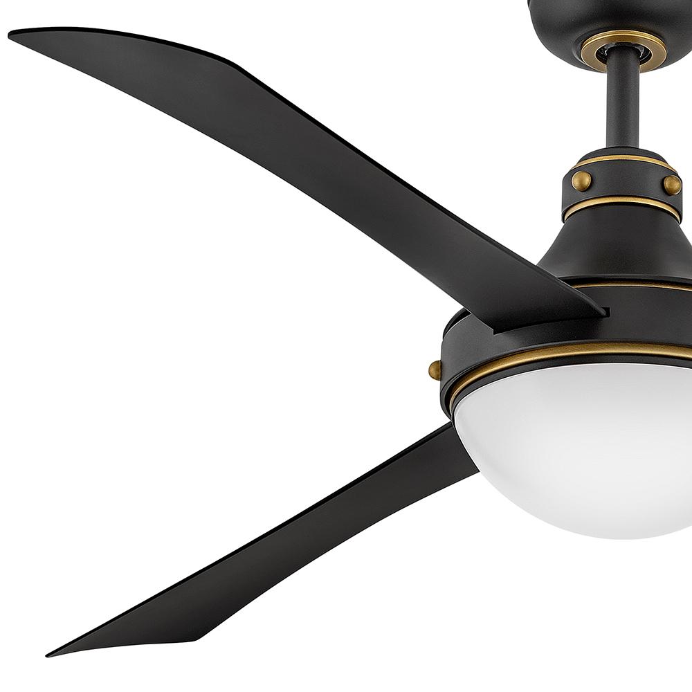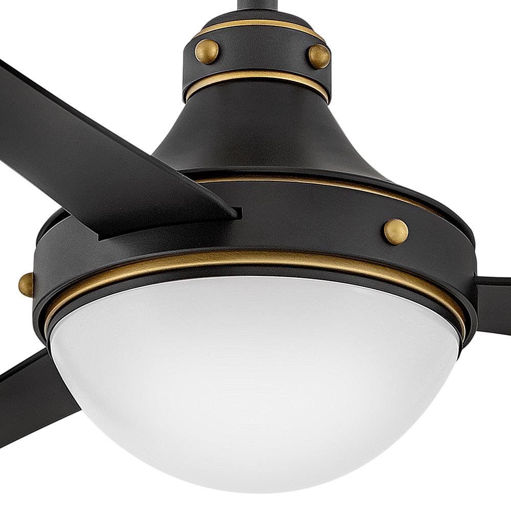Sleek and eye-catching, Oliver's etched opal dome conceals integrated LEDs engineered to maximize light output. Slender blades are complemented by traditional styling and classic two-tone finishes. Wet-rated design is suitable for both interior and outdoor settings. Equipped with a 6-speed DC motor that is WiFi enabled and ready to connect right out of the box. Operated by the HIRO control or WiFi compatible with the Hinkley App.