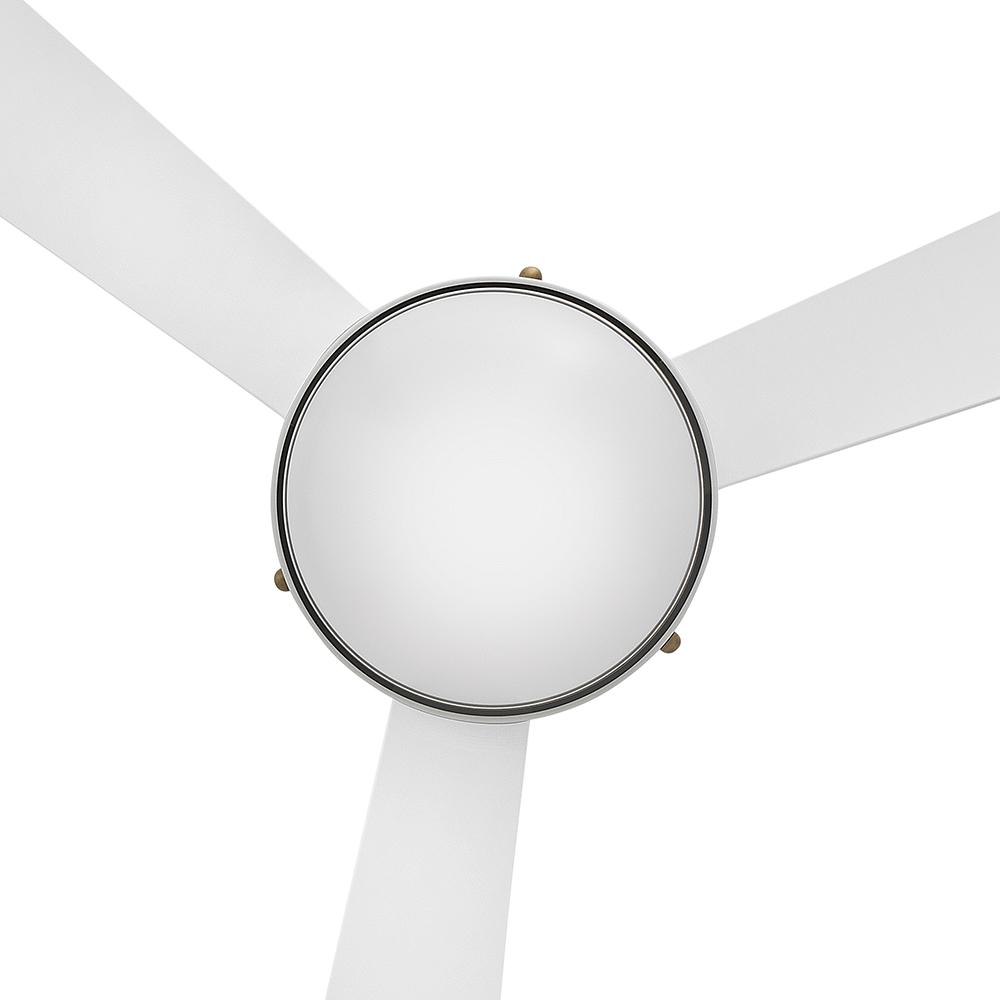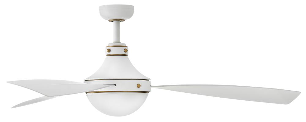 Sleek and eye-catching, Oliver's etched opal dome conceals integrated LEDs engineered to maximize light output. Slender blades are complemented by traditional styling and classic two-tone finishes. Wet-rated design is suitable for both interior and outdoor settings. Equipped with a 6-speed DC motor that is WiFi enabled and ready to connect right out of the box. Operated by the HIRO control or WiFi compatible with the Hinkley App.