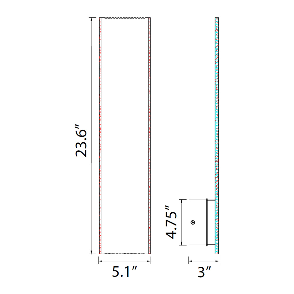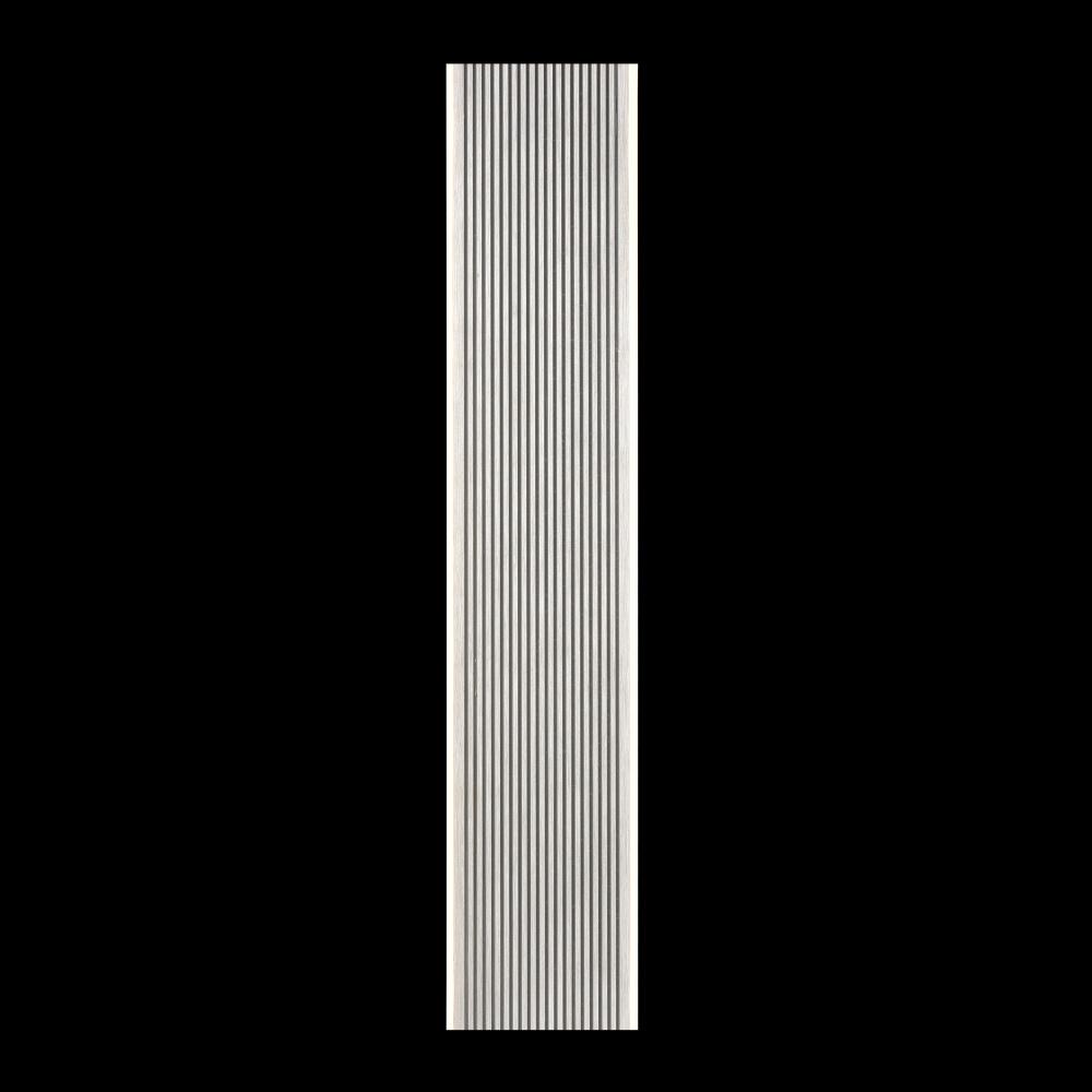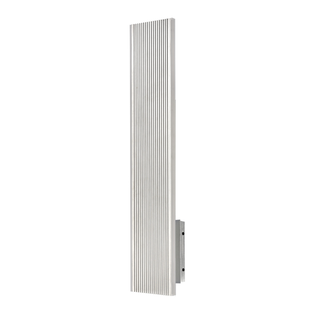 Ultra sleek and wide 24" all-terior marine grade LED wall sconce. Architectural vertical incisions within the aluminum frame provide a unique texture to these fixtures. With our slatted brushed aluminum marine grade finish with matte black groves. Integrated replaceable dimmable LED 3CCT 3000K, 3500K, 4000K.