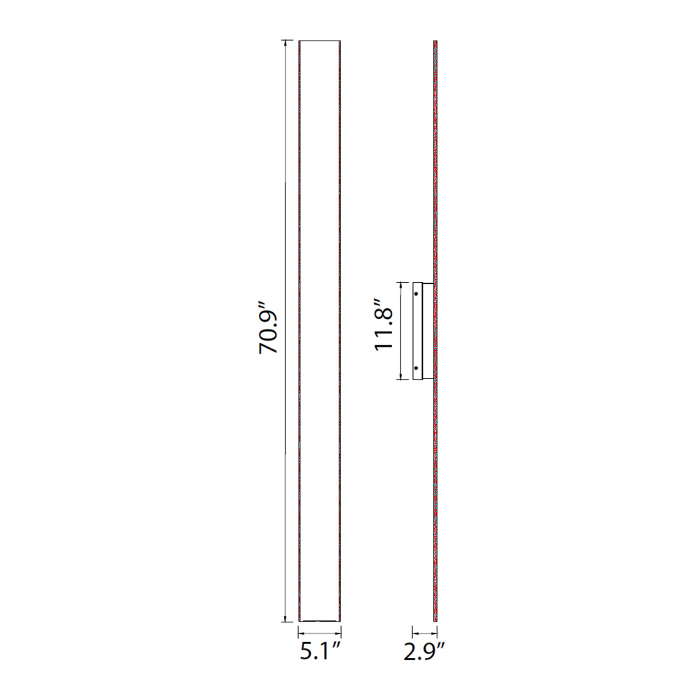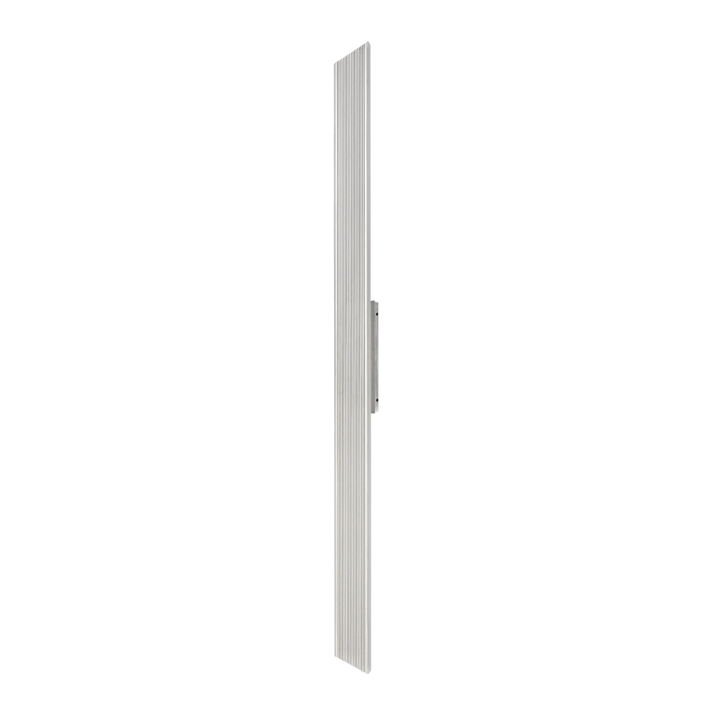 Ultra sleek and wide 72" all-terior marine grade LED wall sconce. Architectural vertical incisions within the aluminum frame provide a unique texture to these fixtures. With our slatted brushed aluminum marine grade finish with matte black groves. Integrated replaceable dimmable LED 3CCT 3000K, 3500K, 4000K.
