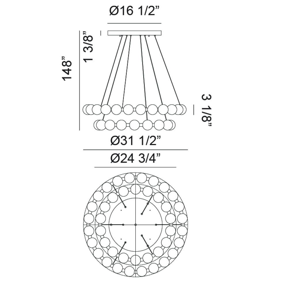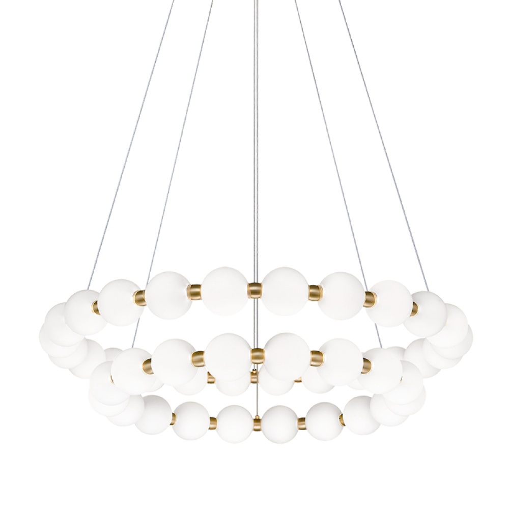 Oni is an elegant tasteful design inspired by the beauty of pearls. This stunning LED series features round Frosted Glass threaded together on an Oxidized Gold body. Silver cables attached to the Oxidized Gold canopy complete the refined look. Offered in 4 sizes.