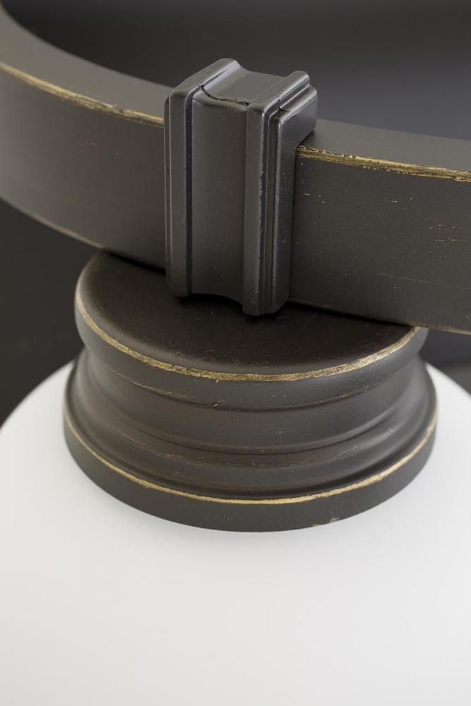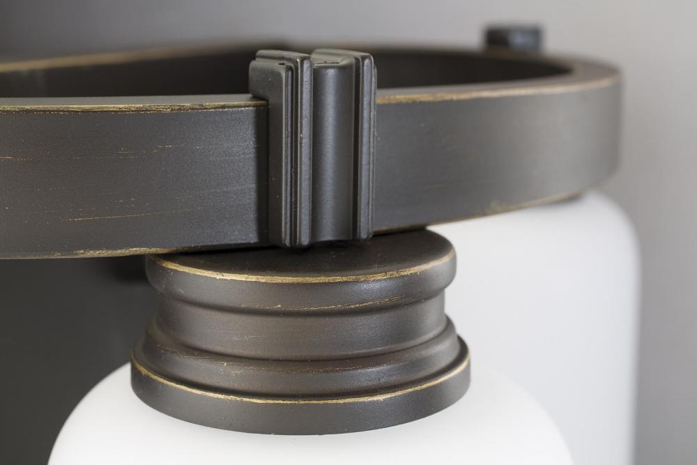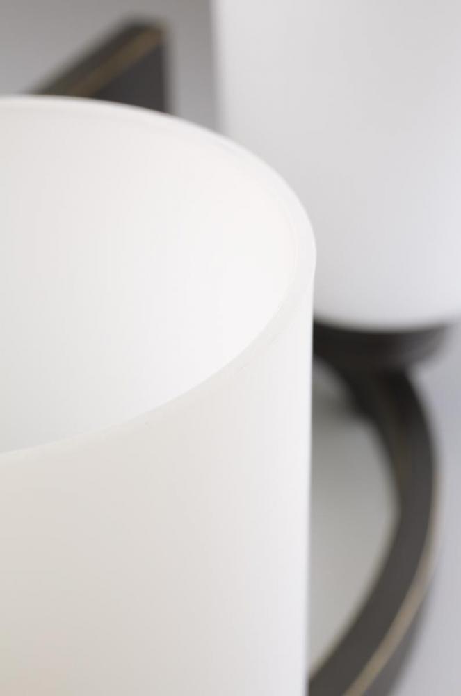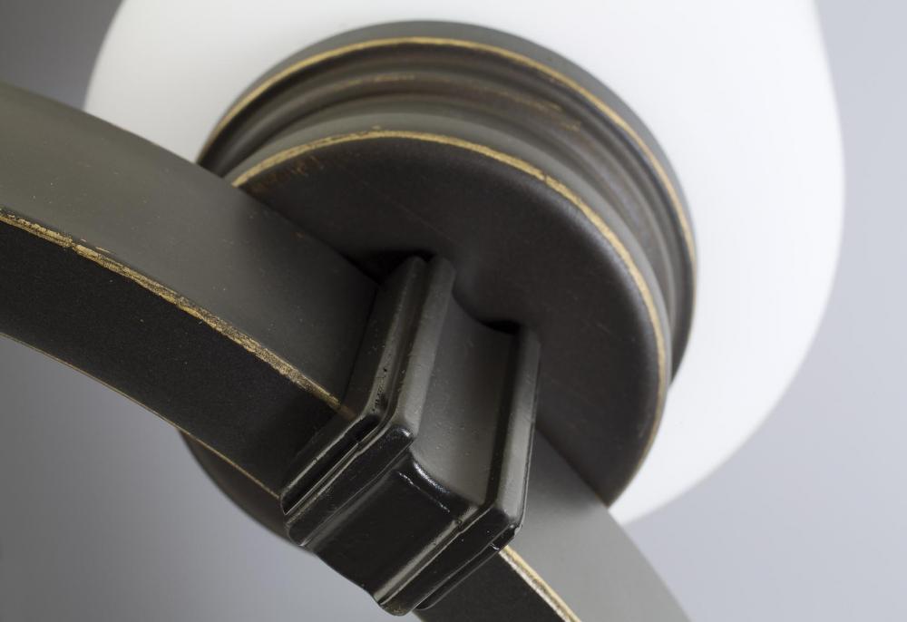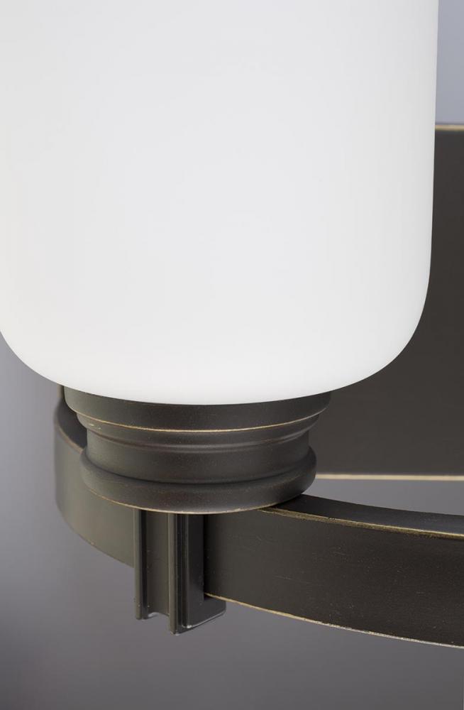 Antique Bronze finish.;Opal etched glass shades orbit around the fixture (6 bottom, 3 top).;Carefully crafted metal fittings support glass.;Includes one 6", four 12" stems and 6 links of chain.