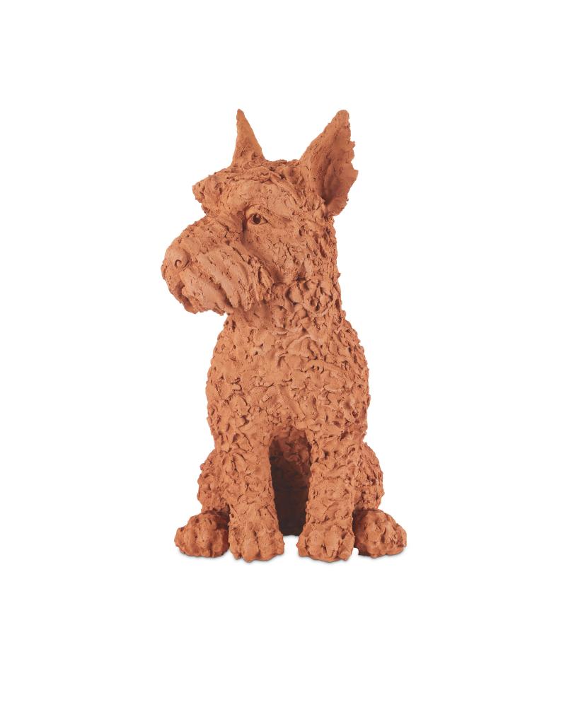 Whimsical in terracotta, Oscar the Scottish Terrier is a sculpture by the emerging Thai artist Nhut Nhathawut. with an expression that is so lifelik that it feels he may bark at any moment, there are a number of artisanal aspects to the canine sculpture. This includes the obvious strokes of the artist's tools that play along the surface of the dog's body. Brownlee Currey had some fun with this terrier, describing his reality as, "The aloof, intelligent, pure breed of our pack, he disapproves of everyone else’s shenanigans. Unlike his namesake, he does not live in a garbage can and smells of fresh cut hay."