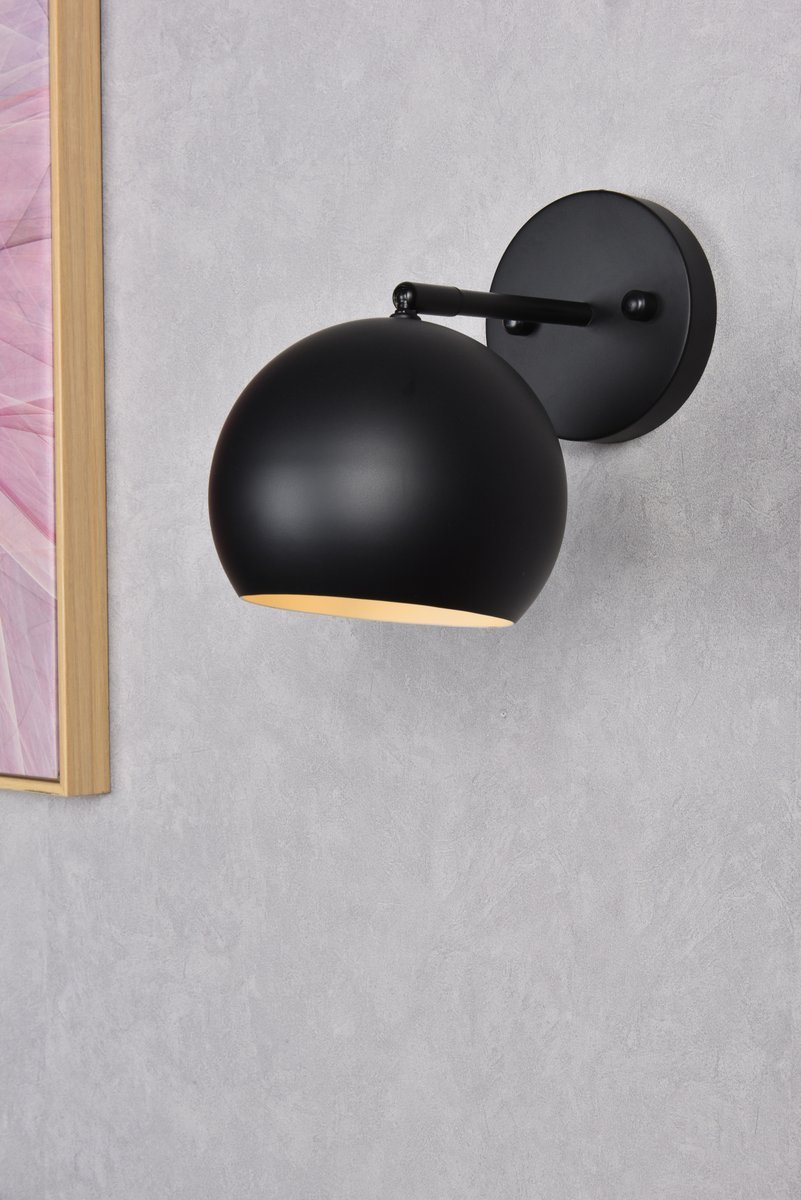 The Othello Collection wall sconce is perfect to show off a minimalistic look. Its globe design has an iron finish which gives a neutral touch and shows balance. Available in black and/or brass, this is the perfect piece to complete a space. This fixture includes a dimmable feature, and requires one E26 socket. Light bulbs not included.