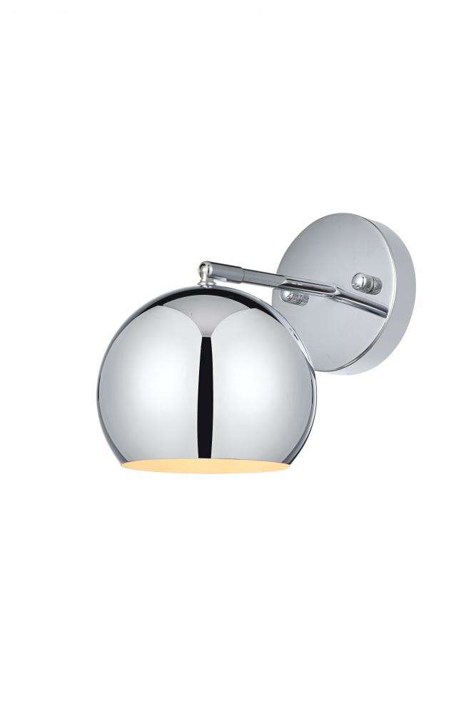 The Othello Collection wall sconce is perfect to show off a minimalistic look. Its globe design has an iron finish which gives a neutral touch and shows balance. Available in satin gold, chrome, black and/or brass, this is the perfect piece to complete a space. This fixture includes a dimmable feature, and requires one E26 socket. Light bulbs not included.