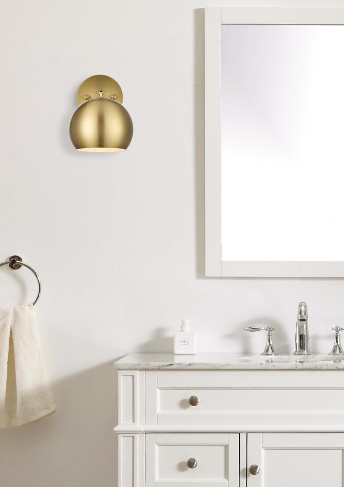 The Othello Collection wall sconce is perfect to show off a minimalistic look. Its globe design has an iron finish which gives a neutral touch and shows balance. Available in satin gold, chrome, black and/or brass, this is the perfect piece to complete a space. This fixture includes a dimmable feature, and requires one E26 socket. Light bulbs not included.