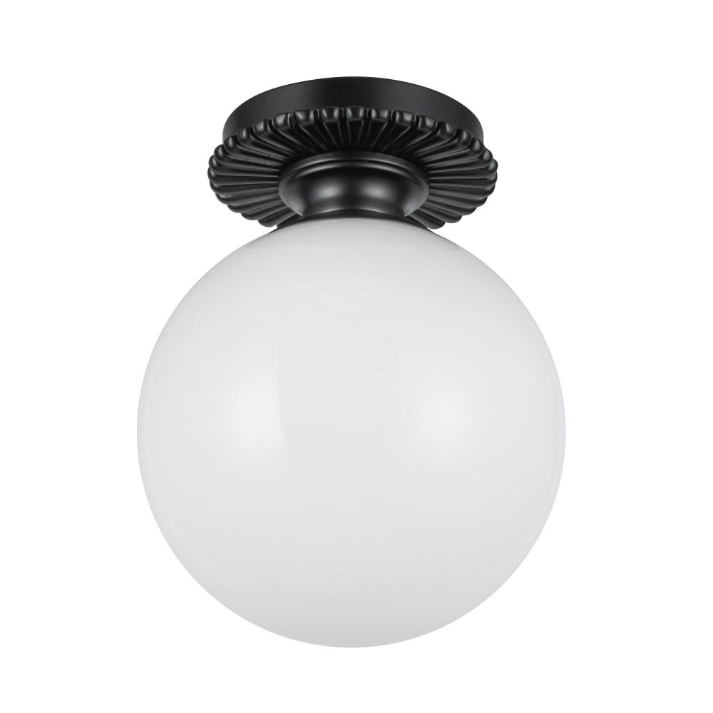 Otis 8-in Matte Black/Glossy Opal Glass Socket Semi-Flush Mount