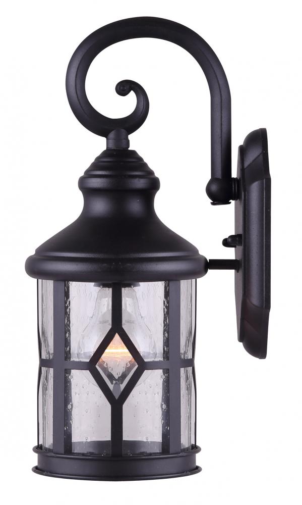 Elevate your outdoor space with the Outdoor 1 Light Outdoor Lantern in a sleek Black finish, inspired by Scandinavian simplicity. This elegant outdoor sconce blends minimalist design with functional beauty, creating a captivating ambiance that welcomes you home. Crafted with seeded glass and featuring a user-replaceable bulb, this outdoor downlight offers both style and convenience. Whether illuminating your porch, patio, or garden wall, the Outdoor Lantern adds a touch of modern sophistication to any exterior setting. Experience the essence of Scandinavian design and create an inviting outdoor retreat with this timeless piece.