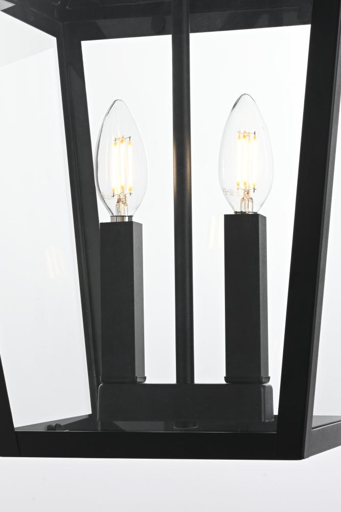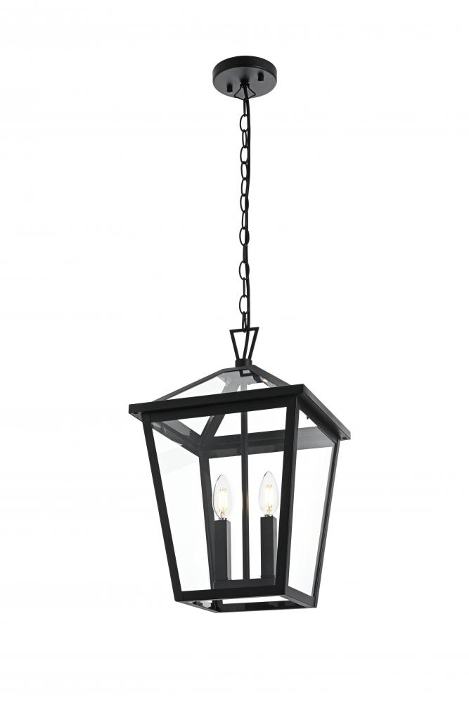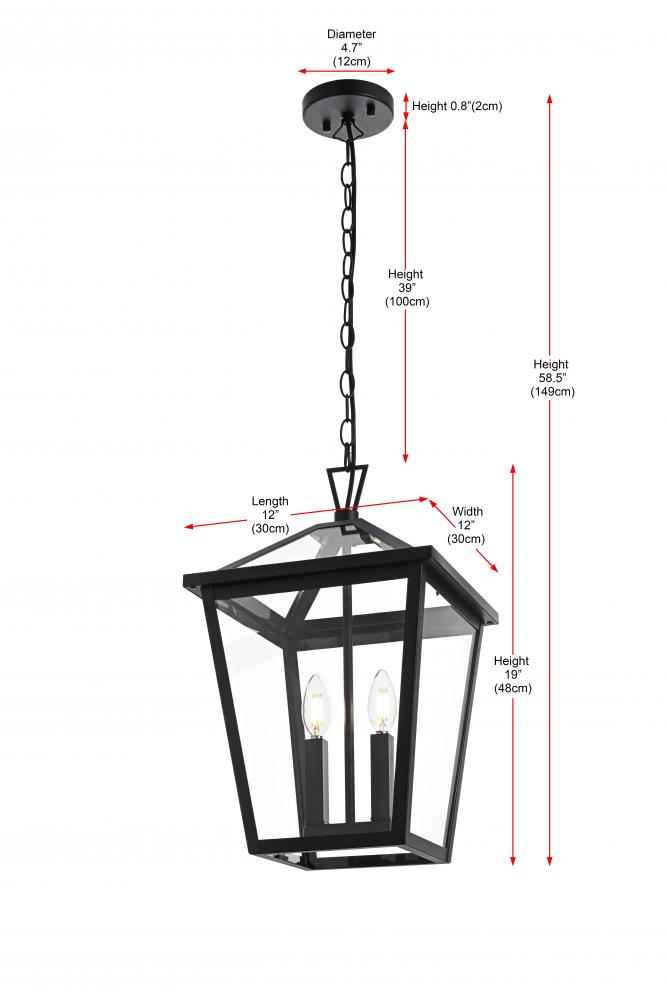 Introduce a classic and timeless glow to your outdoor space with this stunning lantern-style pendant light. Featuring a classic tapered frame and sophisticated matte black finish, this pendant light brings a refined, versatile aesthetic that enhances any home exterior, whether traditional or contemporary. with dual candelabra bulb holders, this pendant adds a vintage touch while ensuring bright, effective illumination. The tapered glass panels allow for maximum light output, creating a warm and inviting ambiance. Built from weather-resistant metal and ETL certified for wet locations, this pendant is crafted to withstand the elements while maintaining its beauty. Its adjustable chain allows for easy height customization, making it suitable for porches, patios, or entryways. Illuminate your home in style with this beautifully crafted outdoor pendant light.