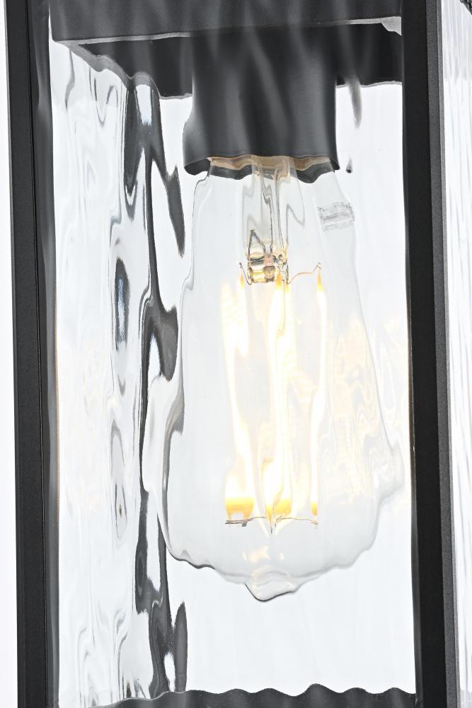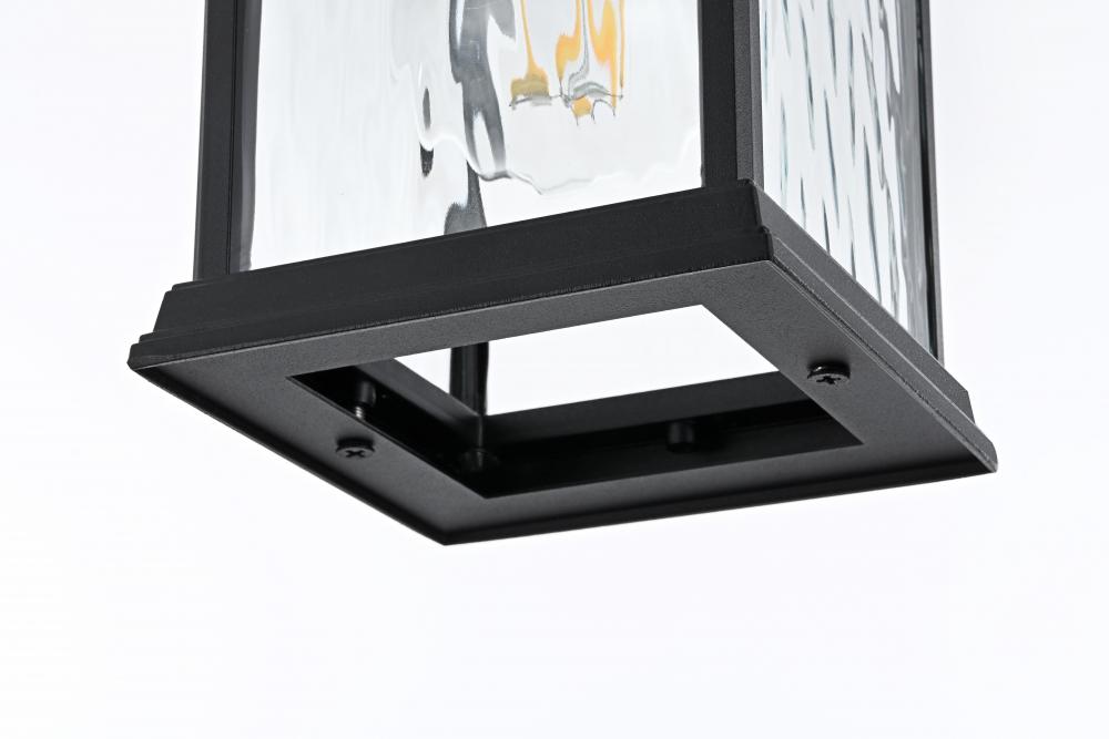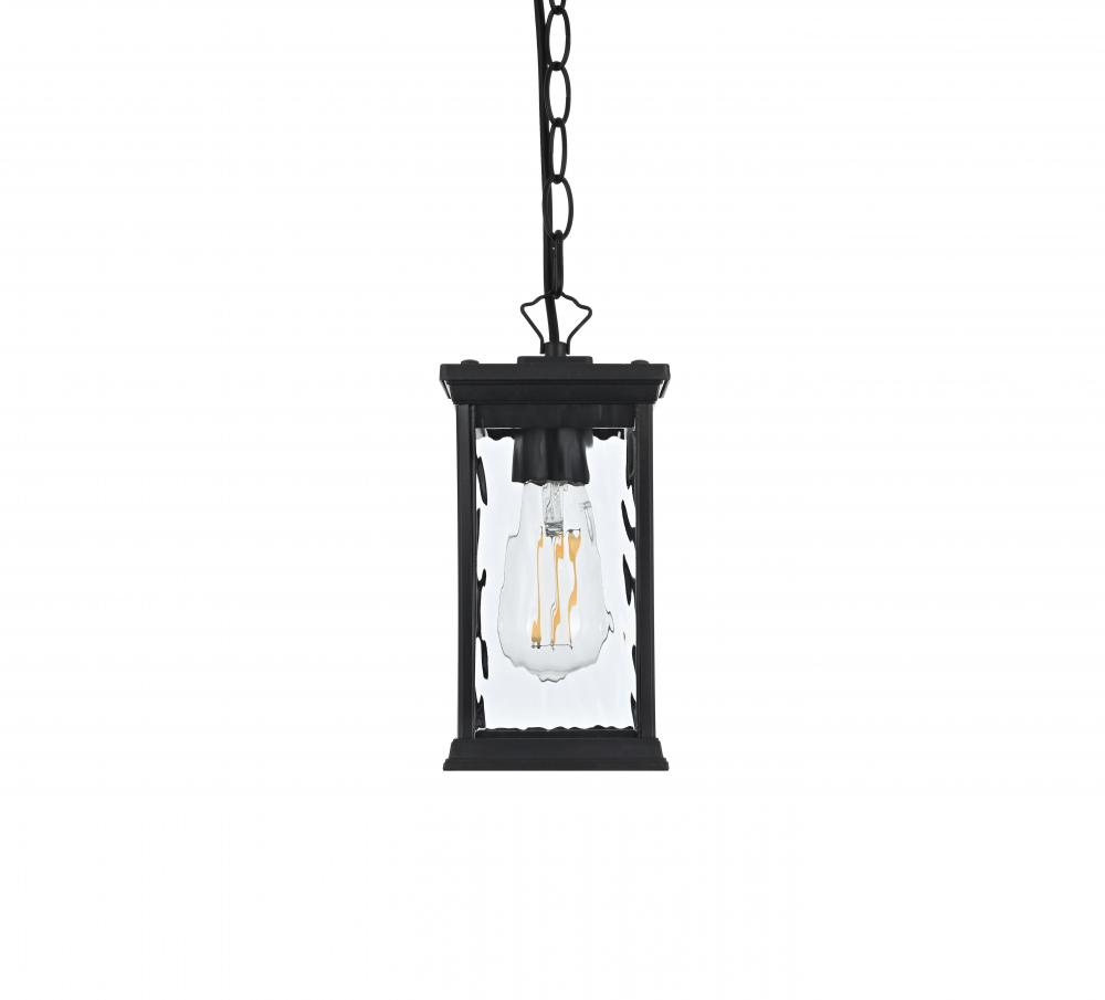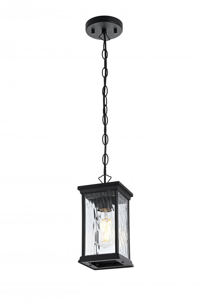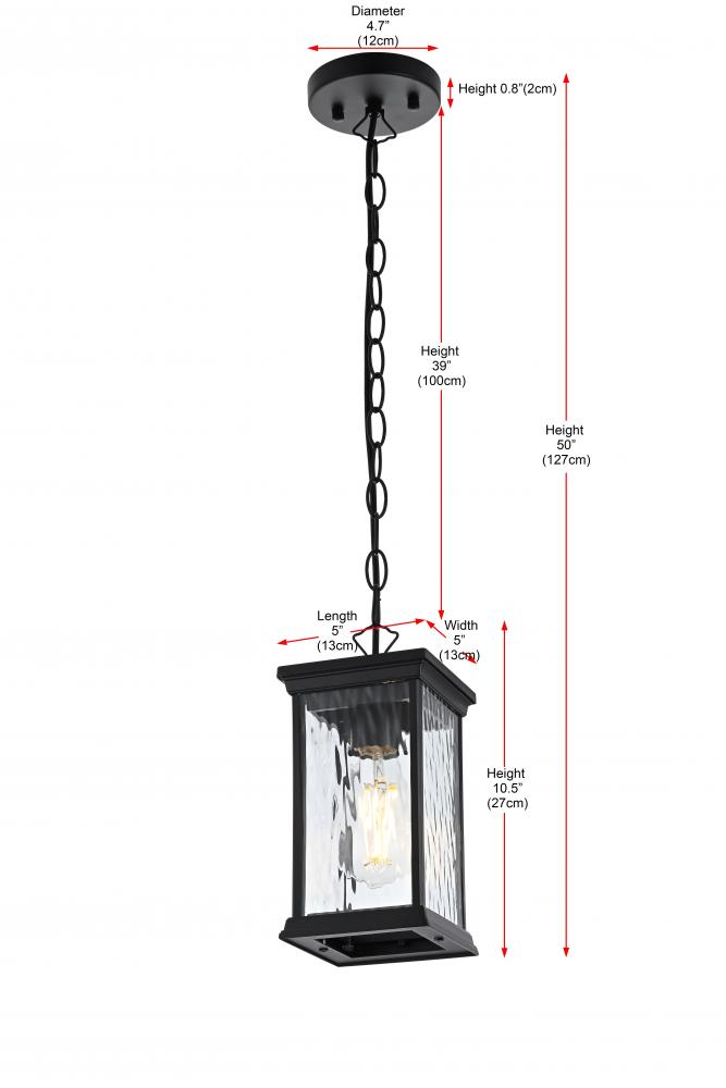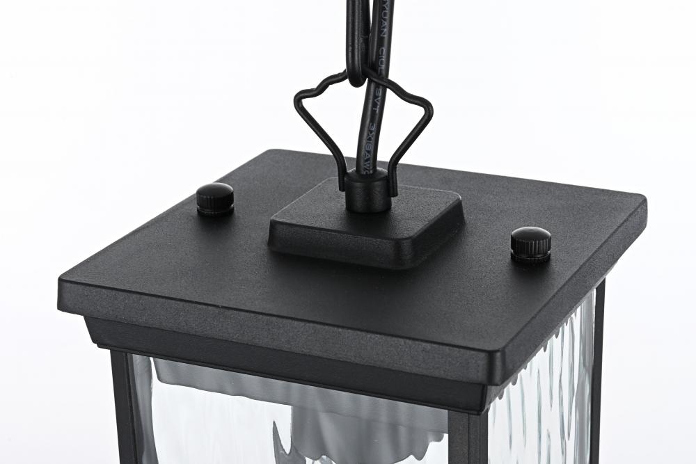 Illuminate your outdoor living space with this grand pendant light, featuring beautiful water glass panels that add a sophisticated texture and shimmering effect to any setting. The classic rectangular lantern design, combined with a sleek matte black finish, brings timeless charm with a modern twist, making it suitable for a wide variety of exterior decors. with its visible candelabra bulb, this pendant light creates a vintage aesthetic that looks stunning when paired with decorative filament bulbs. Constructed from weather-resistant metal, this pendant is designed to endure the outdoor elements, ensuring lasting beauty. The adjustable chain provides customizable height, making it perfect for porches, patios, or entryways. Plus, the open-bottom design offers easy maintenance, and ETL certification ensures reliability and safety in wet locations. Upgrade your home’s curb appeal with this beautifully crafted pendant light that blends style and practicality.