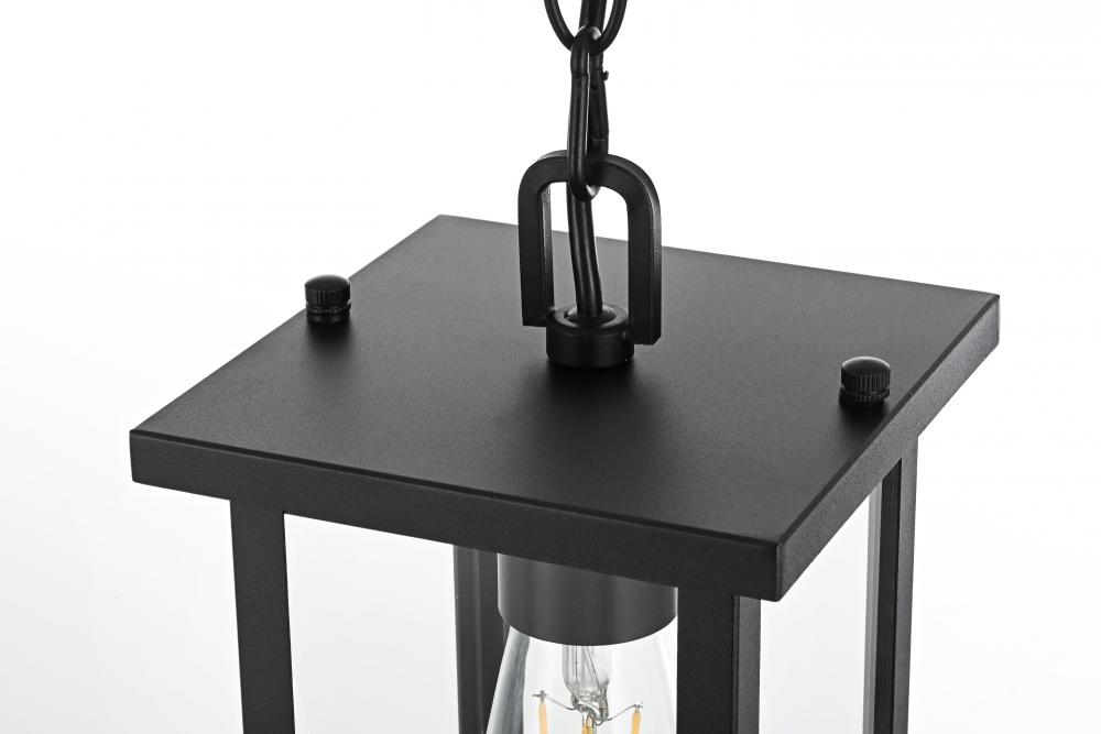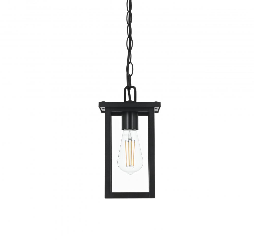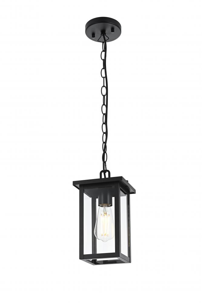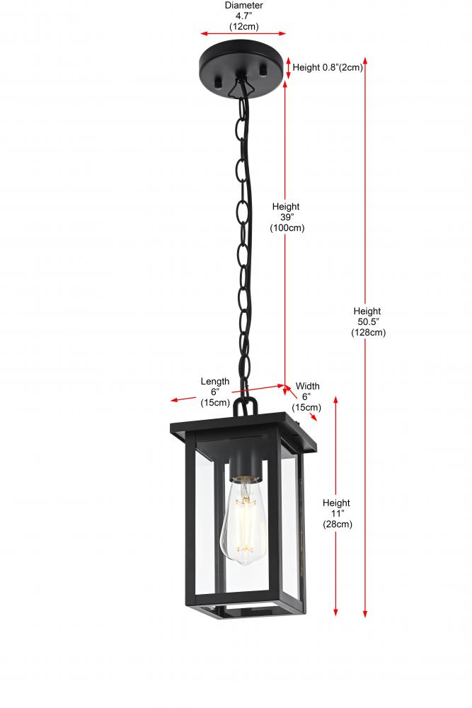 Add a touch of minimalist elegance to your outdoor spaces with this classic rectangular pendant light. Featuring a clean-lined frame finished in matte black, this pendant light exudes modern sophistication while its clear glass panels provide a warm, inviting glow. The visible bulb design allows for added style and customization, making it perfect for use with decorative filament bulbs. Constructed from durable, weather-resistant materials and certified for wet locations, this pendant light is built to withstand the elements, ensuring long-lasting beauty and reliable illumination for porches, patios, or entryways. The adjustable chain provides flexibility in hanging height, making it a versatile choice for enhancing your home's exterior with timeless charm.