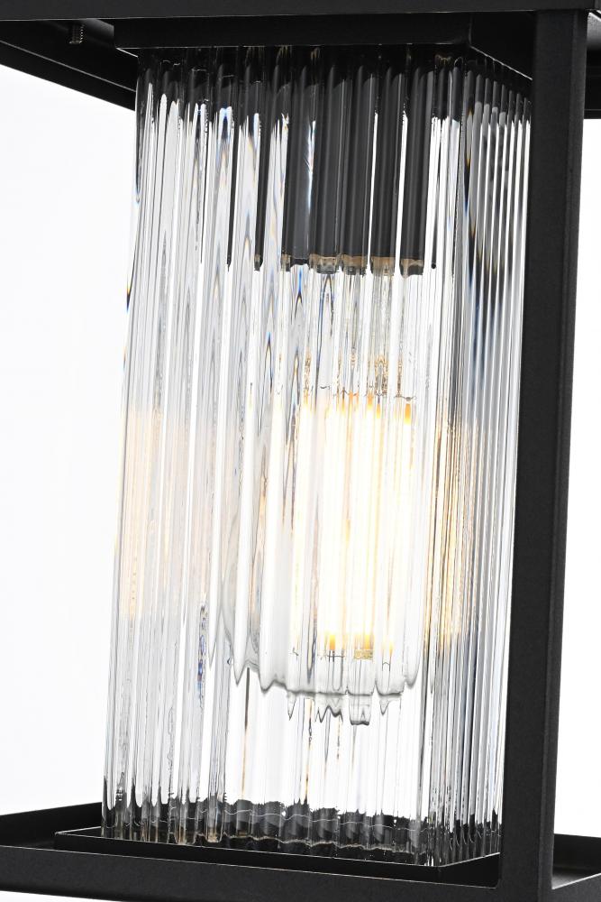Features a modern rectangular fluted clear glass that creates a beautiful, sophisticated glow.