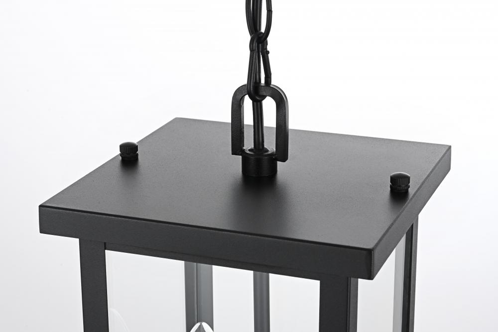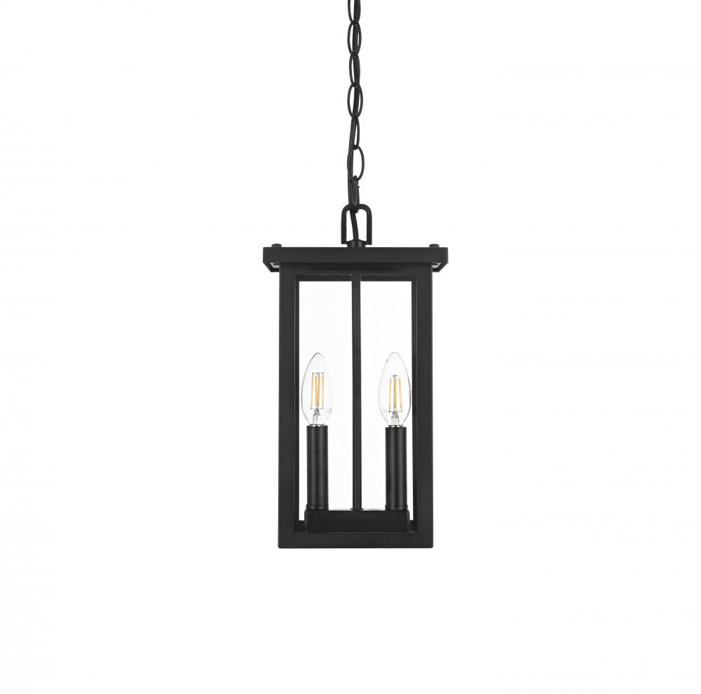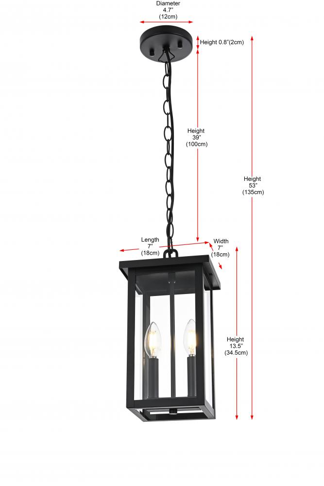 Add a touch of minimalist elegance to your outdoor spaces with this classic rectangular pendant light. Featuring a clean-lined frame finished in matte black, this pendant light exudes modern sophistication while its clear glass panels provide a warm, inviting glow. The visible bulb design allows for added style and customization, making it perfect for use with decorative filament bulbs. Constructed from durable, weather-resistant materials and certified for wet locations, this pendant light is built to withstand the elements, ensuring long-lasting beauty and reliable illumination for porches, patios, or entryways. The adjustable chain provides flexibility in hanging height, making it a versatile choice for enhancing your home's exterior with timeless charm.