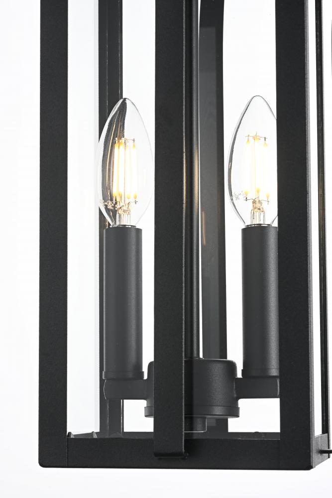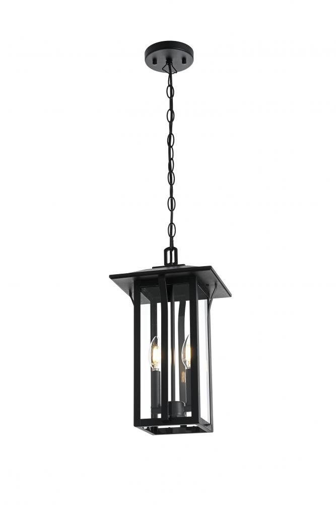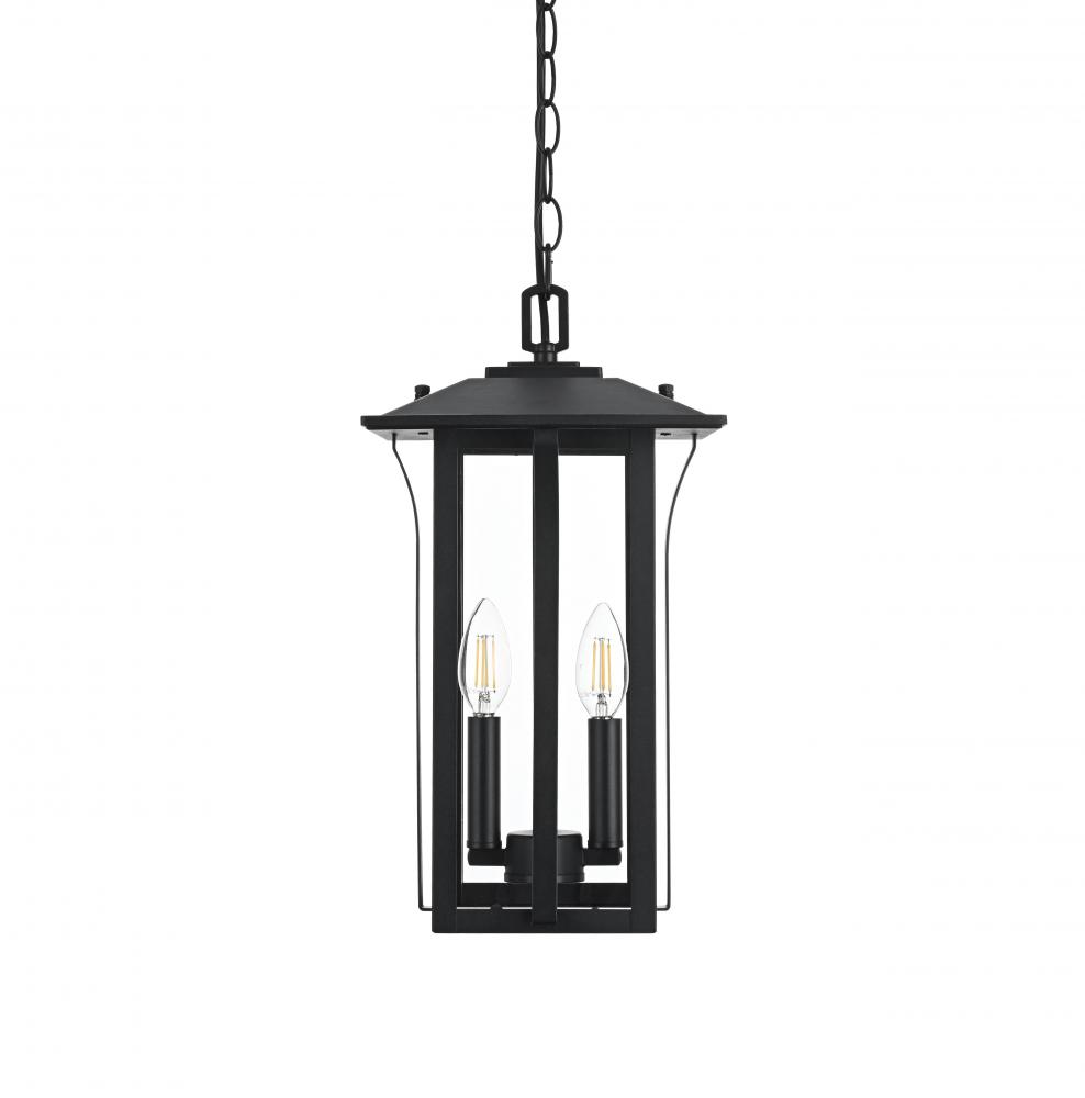 Enhance the sophistication of your outdoor space with this elegant lantern-style pendant light. Featuring clean lines and a dual-candelabra bulb design, this pendant combines classic charm with a modern flair that suits a wide variety of exterior styles. The clear glass panels allow for maximum light output, creating a warm and inviting atmosphere for guests. Finished in versatile matte black, this light can easily complement both traditional and contemporary decor. Constructed from durable metal and ETL certified for wet locations, this pendant light is built to withstand outdoor weather while maintaining its beauty. The adjustable hanging chain allows you to find the perfect height for any entryway, patio, or porch. Add timeless appeal to your outdoor decor with this beautifully crafted pendant light.