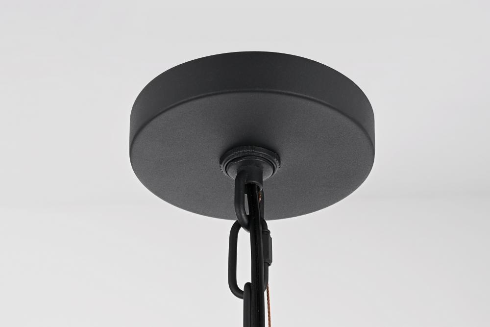Suspended by an adjustable matte black chain for a customizable hanging height.