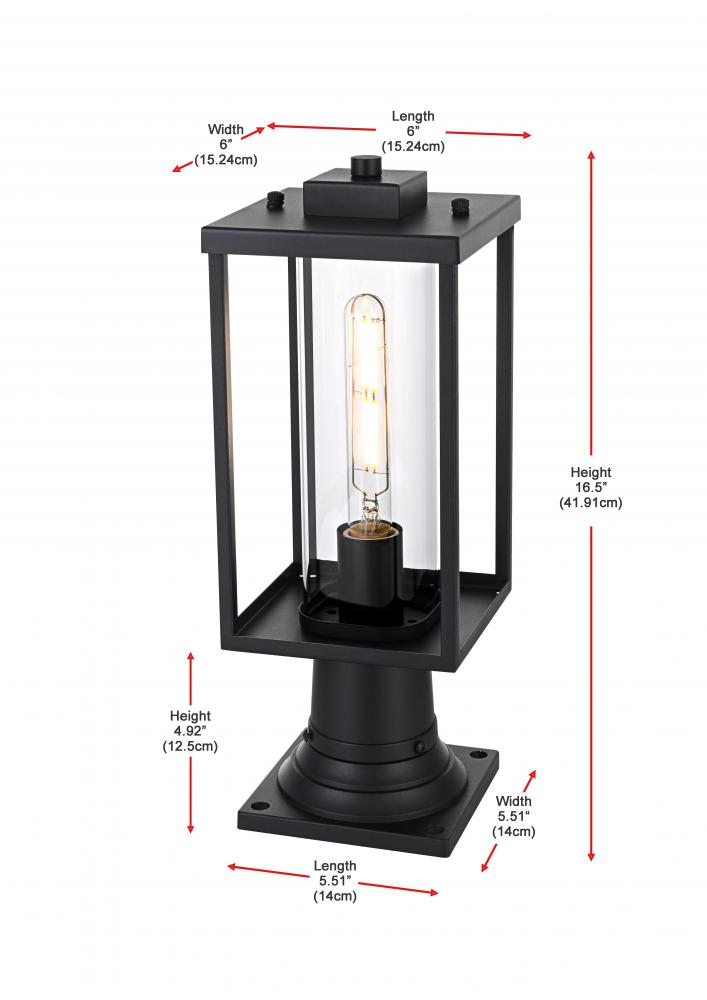 Introduce timeless charm and functionality to your outdoor space with this modern post light. Crafted from durable iron and paired with a sleek glass cylinder, this post light brings clean lines and a minimalist vibe to your exterior decor. It is thoughtfully designed to create a warm, ambient glow, ideal for front porches, patios, and entryways. The sturdy iron frame gives it a robust look, while the clear glass ensures the perfect display of your chosen bulb, allowing for a soft, inviting illumination. Built with practicality in mind, this fixture is as stylish as it is practical, perfect for complementing a range of exterior styles.