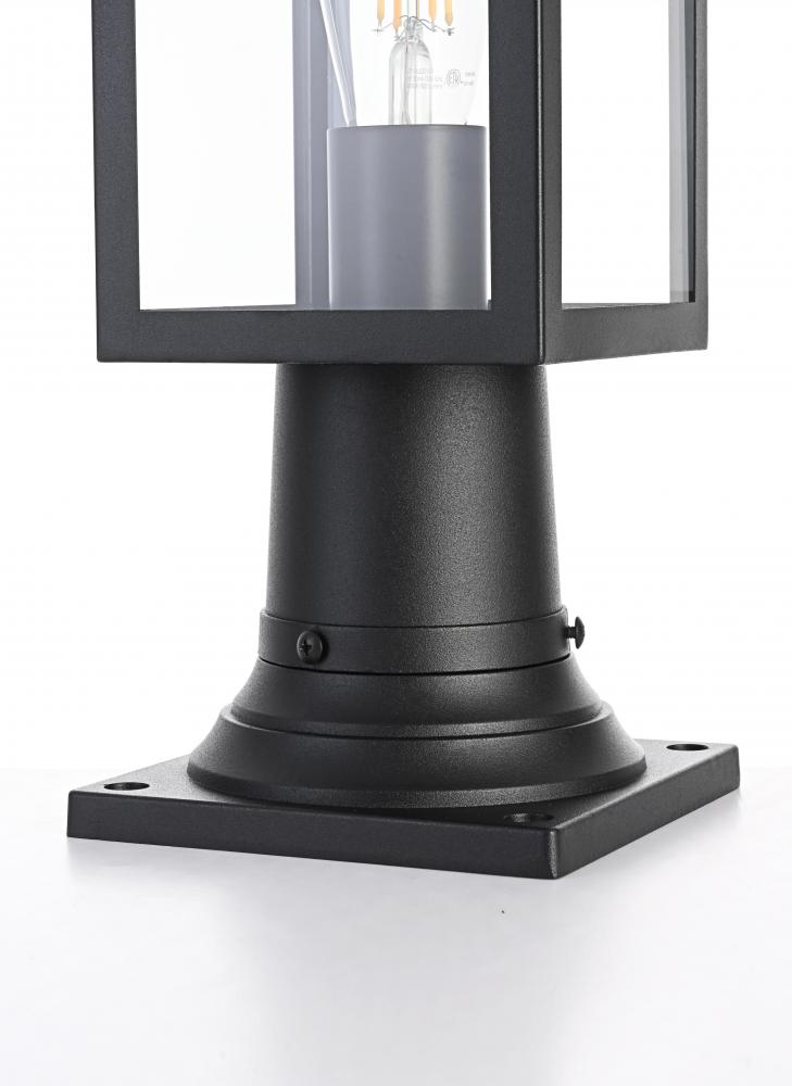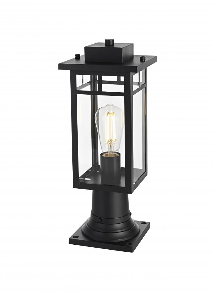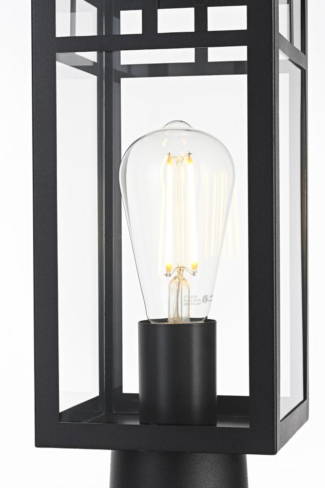 Enhance the curb appeal of your home with this sophisticated outdoor post light. Featuring a sturdy iron frame in a rich matte black finish, this fixture offers a perfect combination of modern aesthetics and traditional charm. Clear glass panels allow for a bright, ambient glow, beautifully showcasing any decorative bulb you choose. The timeless lantern design complements a wide range of architectural styles while ensuring lasting durability against the elements. Whether it's your front porch, back patio, or any outdoor area, this post light effortlessly blends style with functionality.