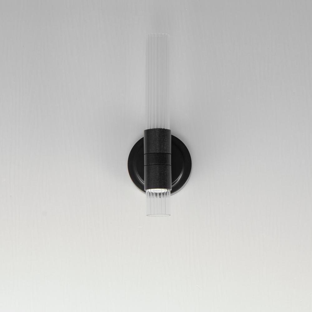 A modern tribute to the wheel chandelier, the Ovation collection integrates LED technology for a dazzling lighting effect. The LED light produces a shimmering lighting effect along the tall and narrow fluted glass shades adding celebratory effervescence. T