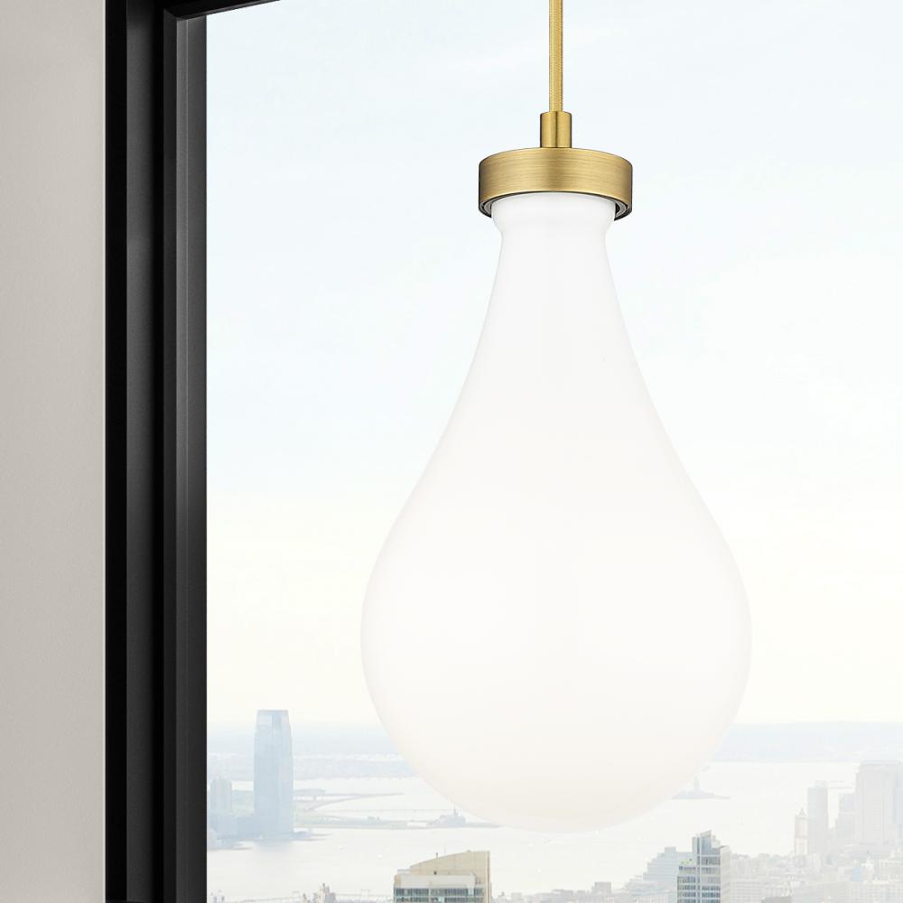 Owego - 1 Light - 5 inch - Brushed Brass - Gloss White Shade - Pendant
