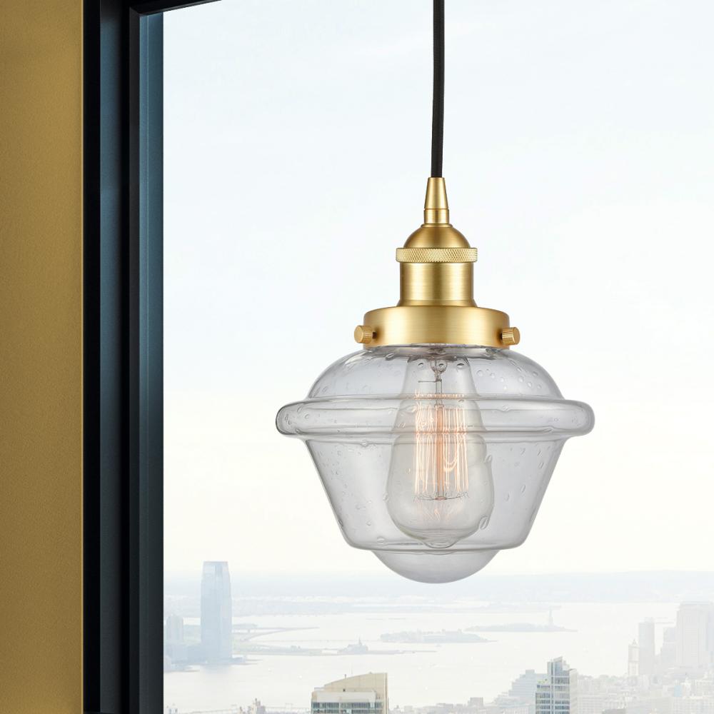 Oxford - 1 Light - 7 inch - Satin Gold - Seedy Shade - Cord hung - Mini Pendant
