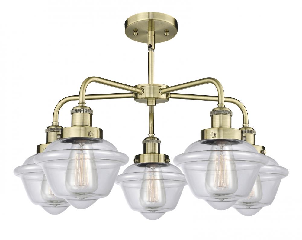 Oxford - 5 Light - 26 inch - Antique Brass - Clear Shade - Chandelier