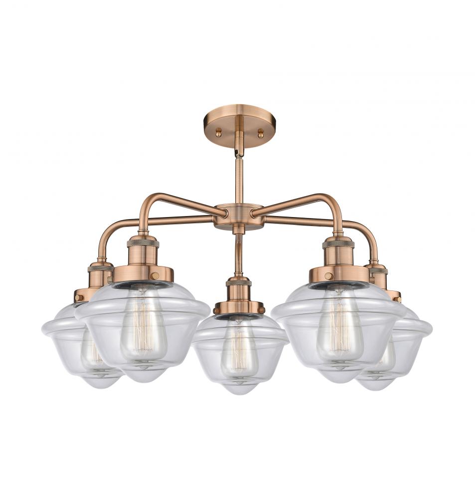 Oxford - 5 Light - 26 inch - Antique Copper - Clear Shade - Chandelier