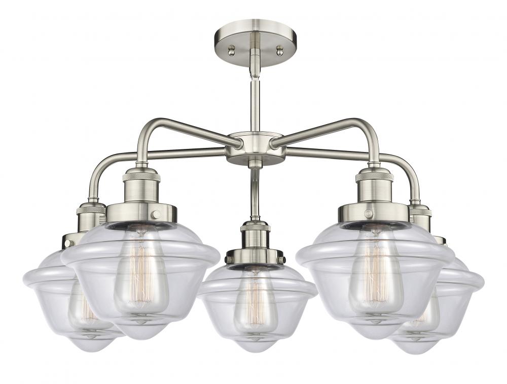 Oxford - 5 Light - 26 inch - Satin Nickel - Clear Shade - Chandelier