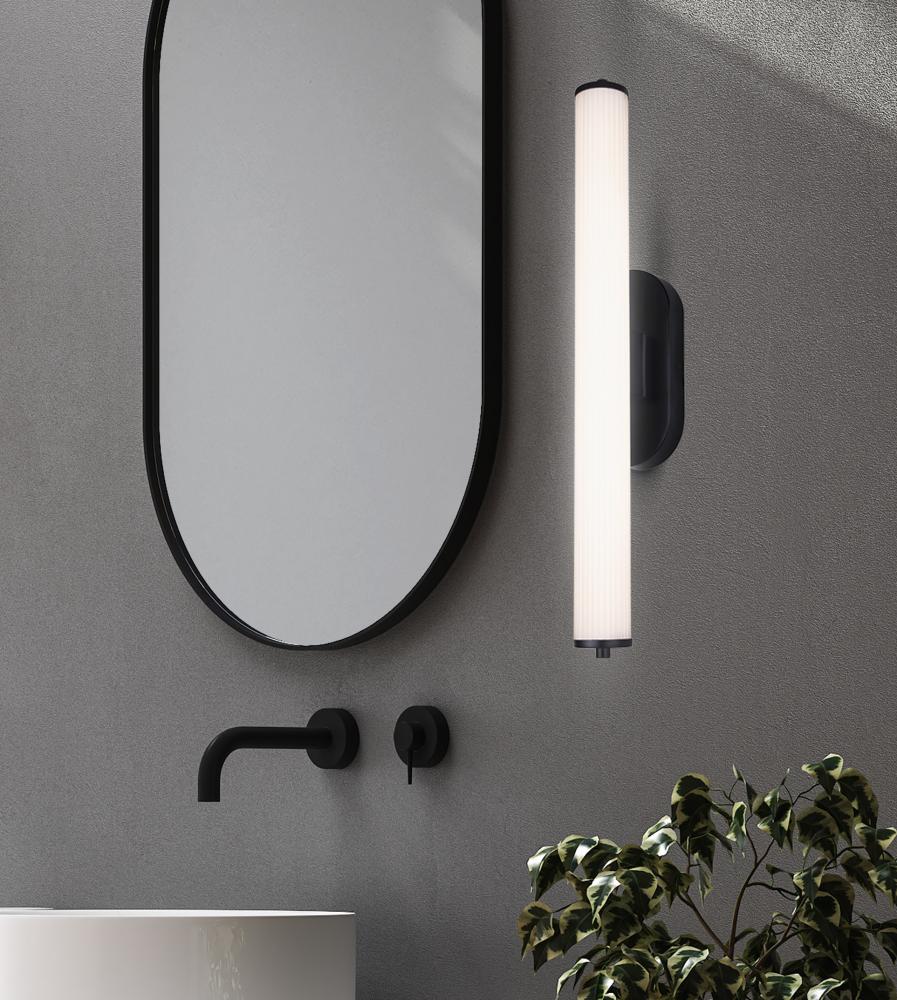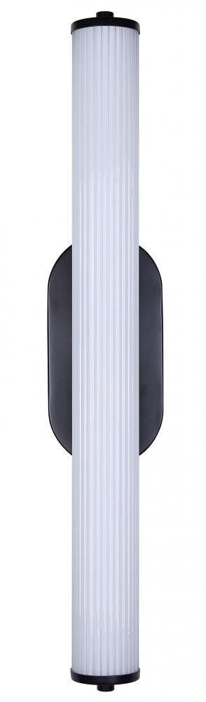 OZZY, LWL322A24BK, LED 24inch Height Wall Sconce, Glossy White Ribbed Glass, 23W LED (Integrated), Dimmable, 3000K 1830Lumens, 4000K 1870Lumens, 5000K 1870Lumens 3CCT Switch, 4.25inch W x 24inch H x 5inch D