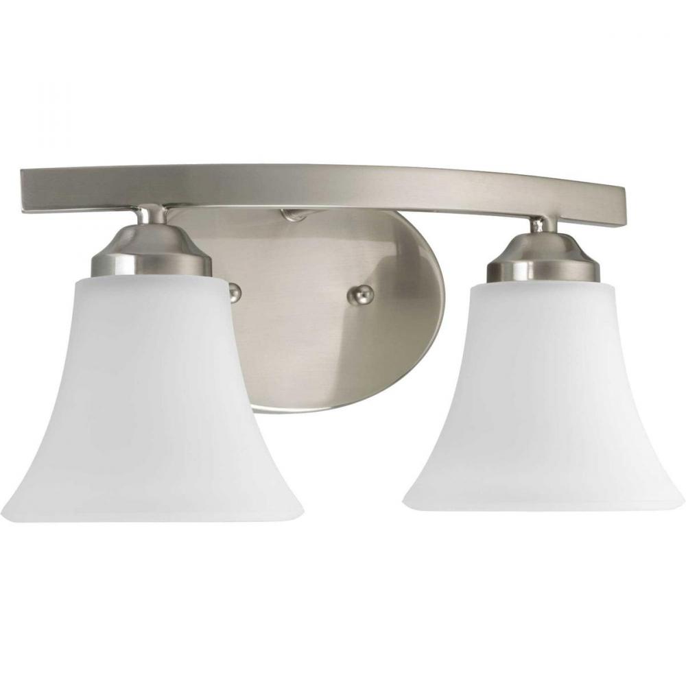 Ideal for a bathroom and powder room.;Perfect for traditional and transitional style settings;Beautiful brushed nickel finish;Elegant etched glass shades;Mount the light fixture facing up or down;Use 2 medium base bulbs that are sold separately (100 W max