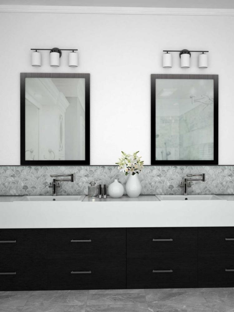 Ideal for a bathroom;Perfect for modern and transitional style settings;Classic textured black finish;Elegant etched glass shades;Mount the light fixture facing up or down;Use 3 medium base bulbs that are sold separately (100 W max - LED/CFL/incandescent);